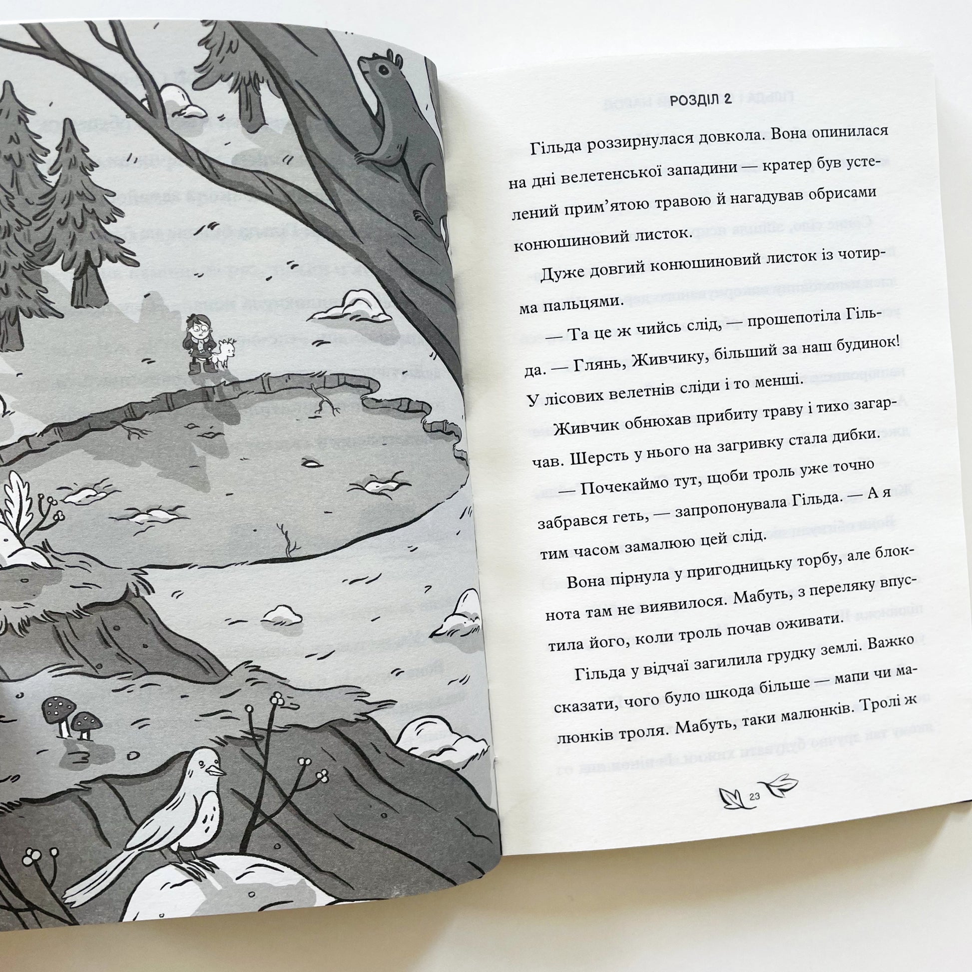 Разом з улюбленою героїнею вперше зустріньте троля, розпочніть мирні переговори з надміру завзятими ельфами та розкрийте таємницю велетня, який приходить опівночі. Щоденне життя Гільди наповнене фантастичними створіннями та відчайдушними пригодами! Але що, як їй доведеться переїхати в місто? Адже Тролещина зовсім не схожа на улюблену домівку серед дикої природи...
