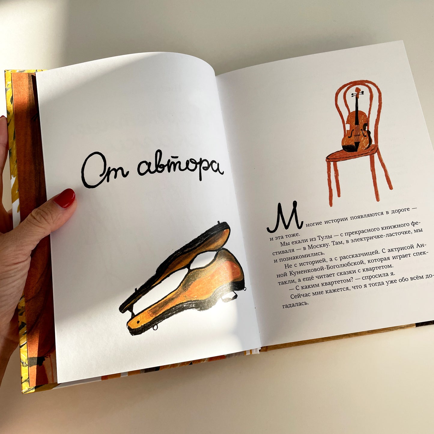 Это не обычные сказки, а сказки с музыкой: они рассказываются со сцены под аккомпанемент квартета. Теперь музыкальные сказки зазвучат и с книжных страниц и по-новому раскроют каждого героя. Это история о силе музыки и волшебстве, которому всегда есть место в обычной жизни.