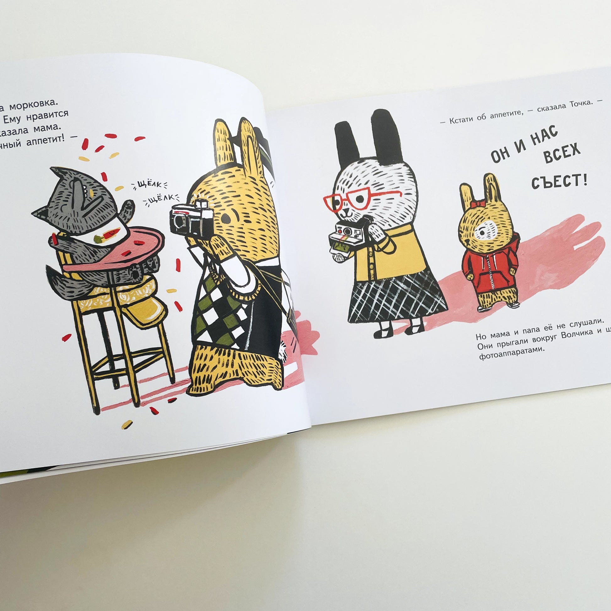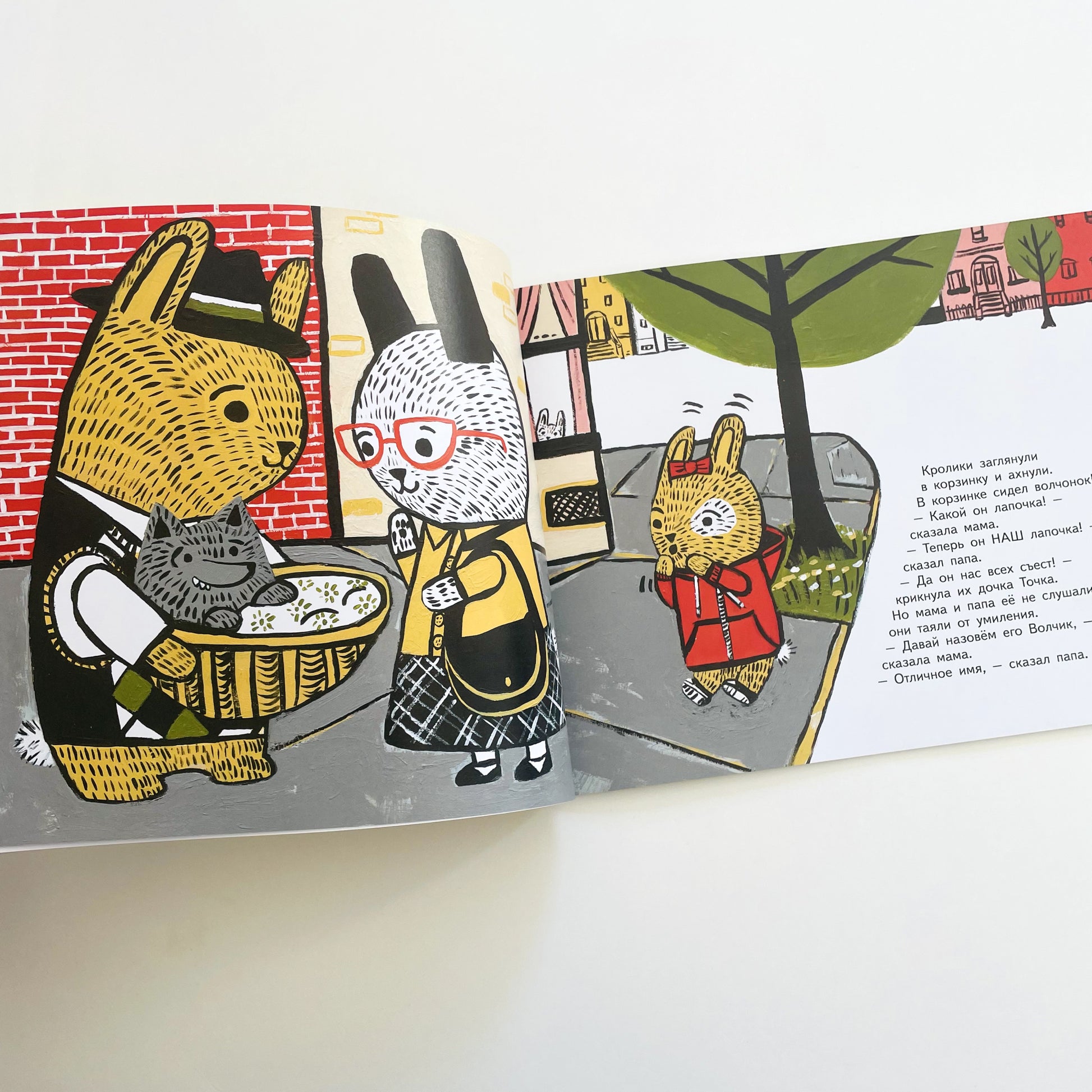 Семейство Кроликов живет в городе на первом этаже кирпичного дома. Однажды у дверей своей квартиры они находят подкидыша. «Какой лапочка!» – дружно умиляются мама и папа и решают усыновить малыша. Их рассудительная дочка Точка пытается отговорить родителей. Ведь в корзинке не кто-нибудь, а волчонок. А волки, как известно, не лучшая компания для кроликов.
