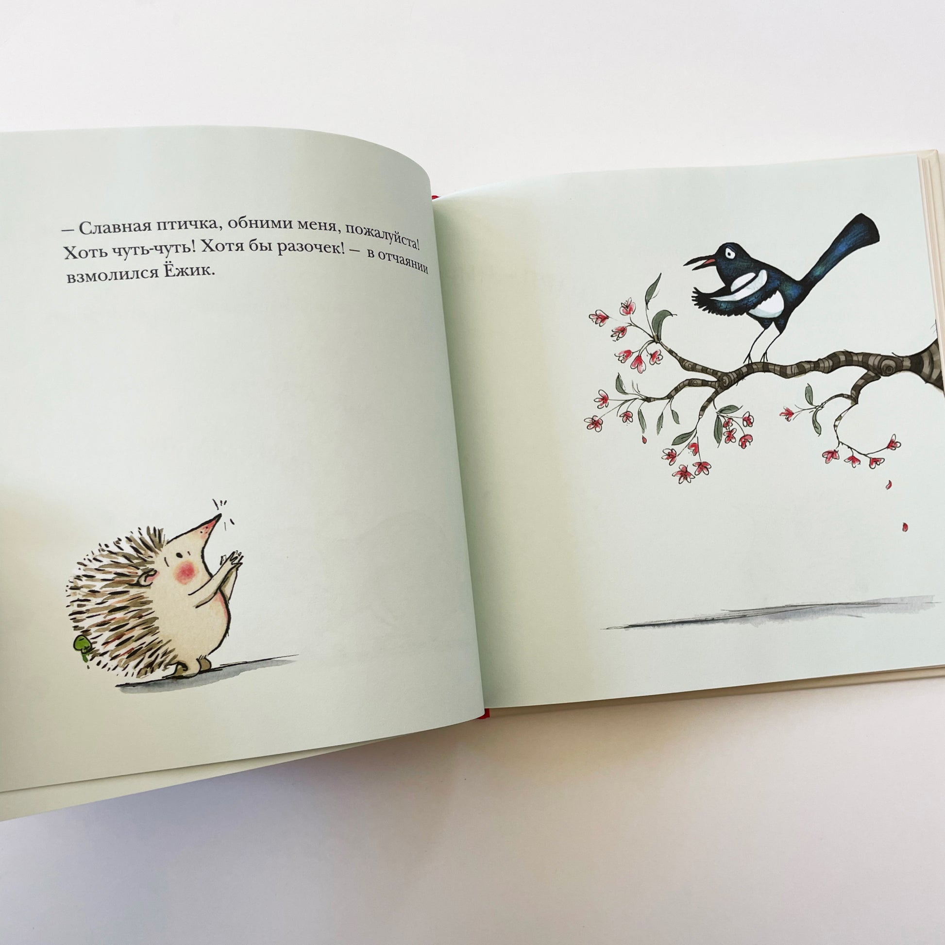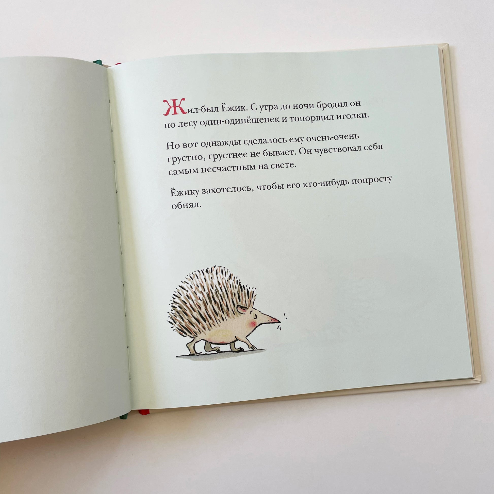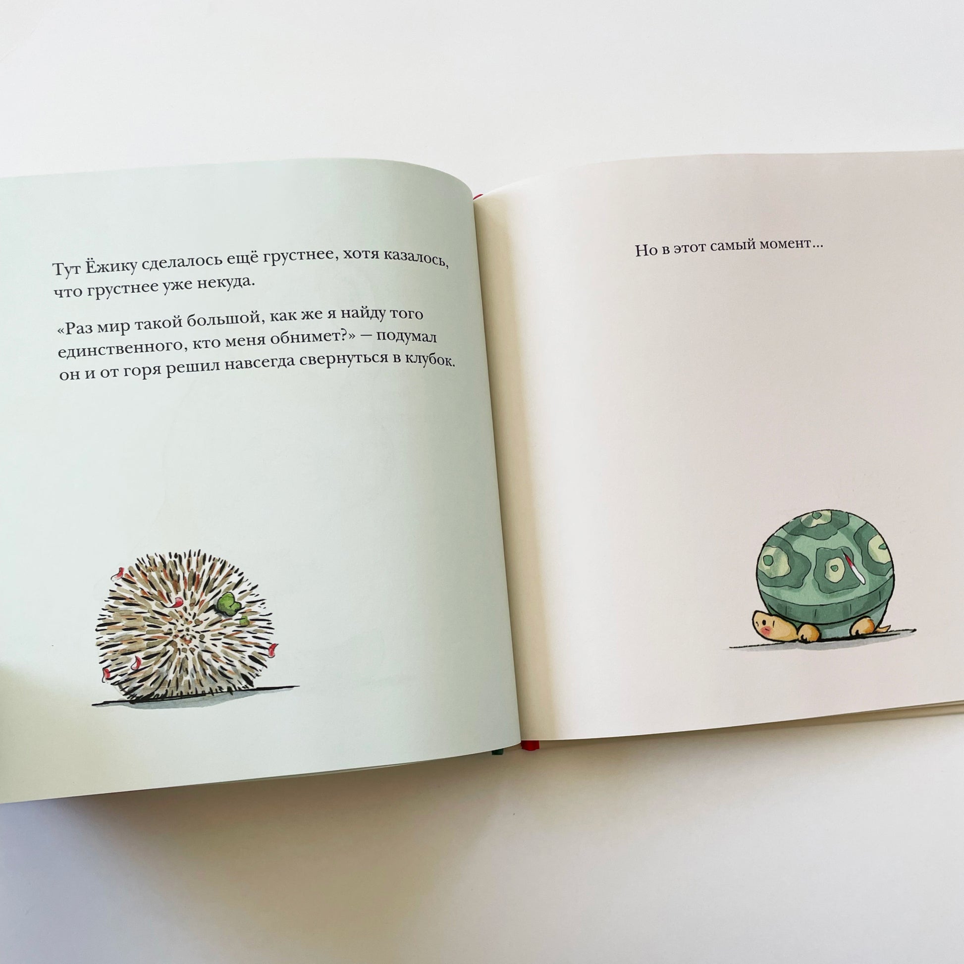 Ёжик был очень-очень одиноким. И от этого сделалось ему однажды так грустно, что дальше некуда. Ёжику захотелось, чтобы его кто-нибудь попросту обнял. Но никто не хотел обнимать несчастного Ёжика – ни лиса, ни белка, ни сорока. «Раз мир такой большой, как же я найду того единственного, кто меня обнимет?» – еще больше испугался Ёжик, и в этот самый момент… он увидел Черепашку.