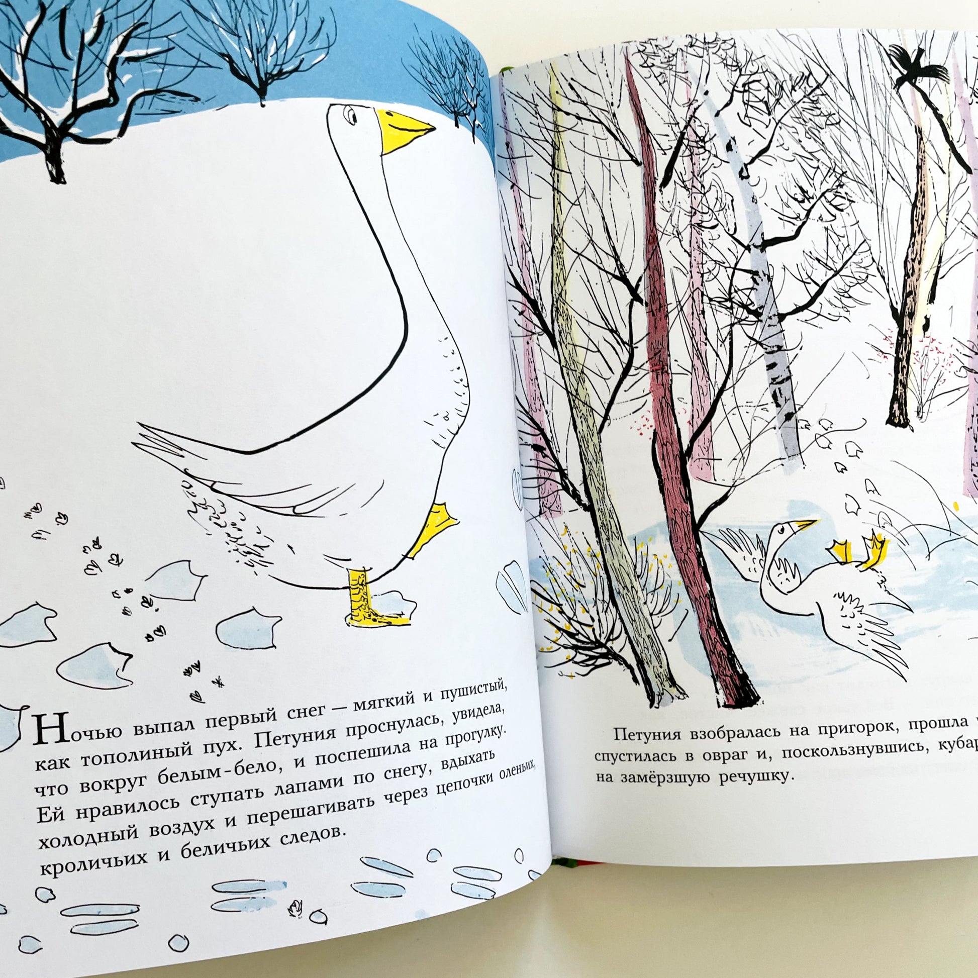 В книгу «Петуния» вошли две сказки о гусыне Петунии: «Глупая гусыня» и «Рождество Петунии». Их придумал и нарисовал американский художник швейцарского происхождения Роже Дювуазен в 1950-х годах. За свою 48-летнюю карьеру автора и иллюстратора он создал 42 книжки-картинки и проиллюстрировал более 140 книг для детей. На историях о Петунии выросло не одно поколение читателей во всем мире.
