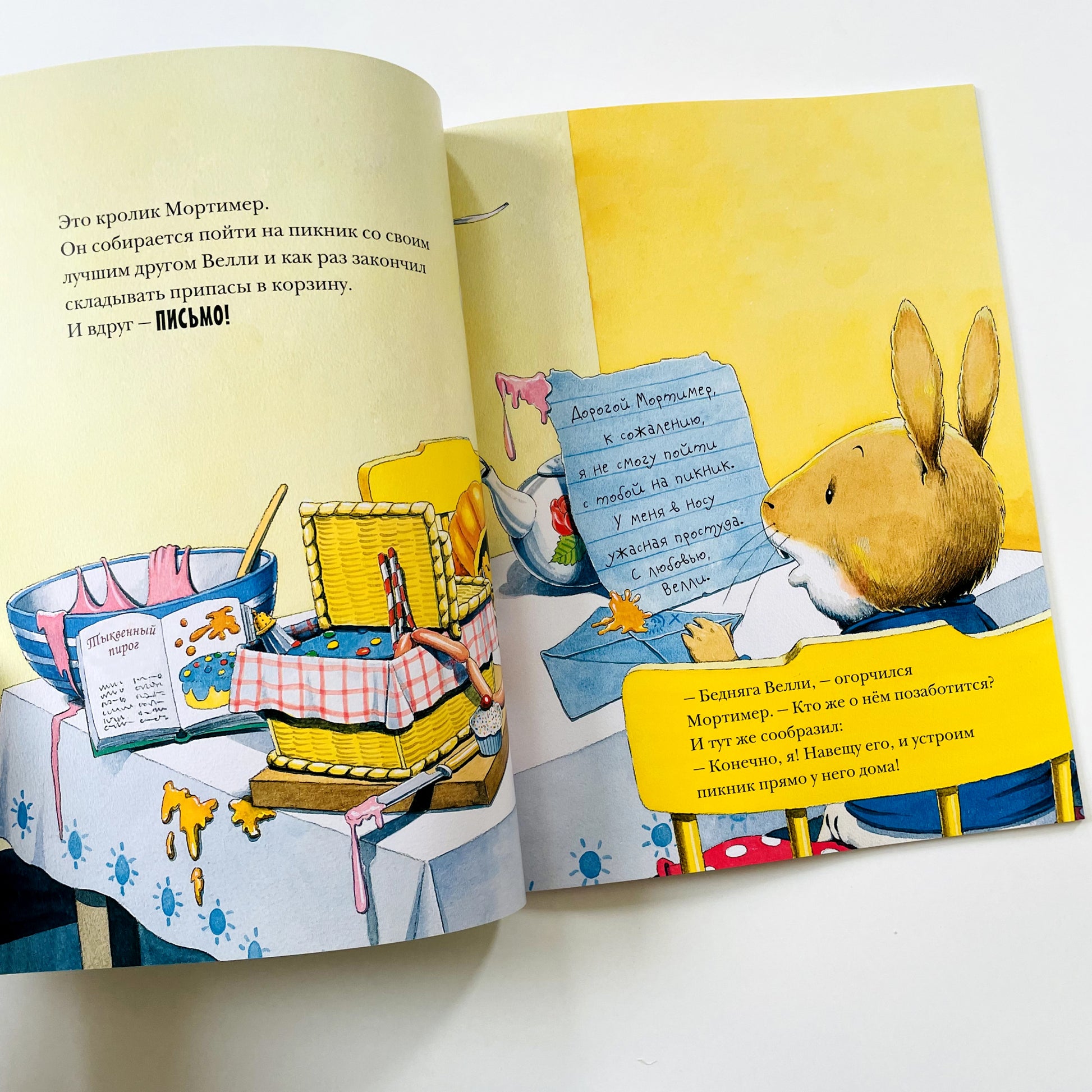 Однажды кролик Мортимер собрался пойти на пикник со своим лучшим другом Велли. Но в назначенный день друг внезапно простудился, поэтому Мортимер решил навестить больного, чтобы порадовать его и устроить пикник прямо у него дома.