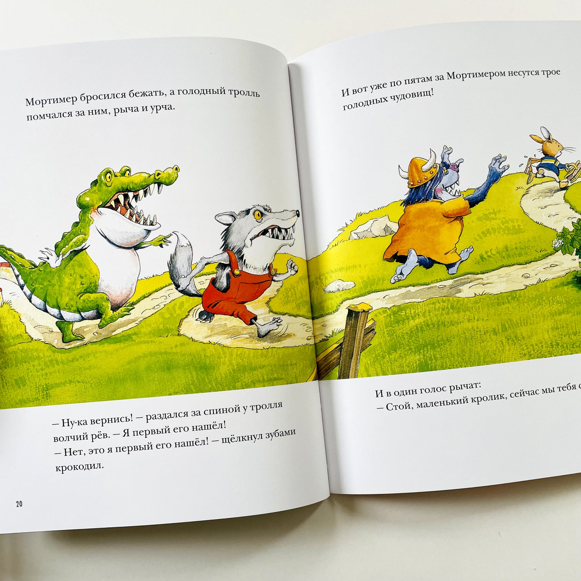 В дороге кролика подстерегало множество опасностей – и огромный голодный крокодил, и страшный серый волк, и волосатый горный тролль, – но храбрый Мортимер с честью выходил из любой сложной ситуации. Ведь ему во что бы то ни стало нужно было поскорее попасть домой к другу!