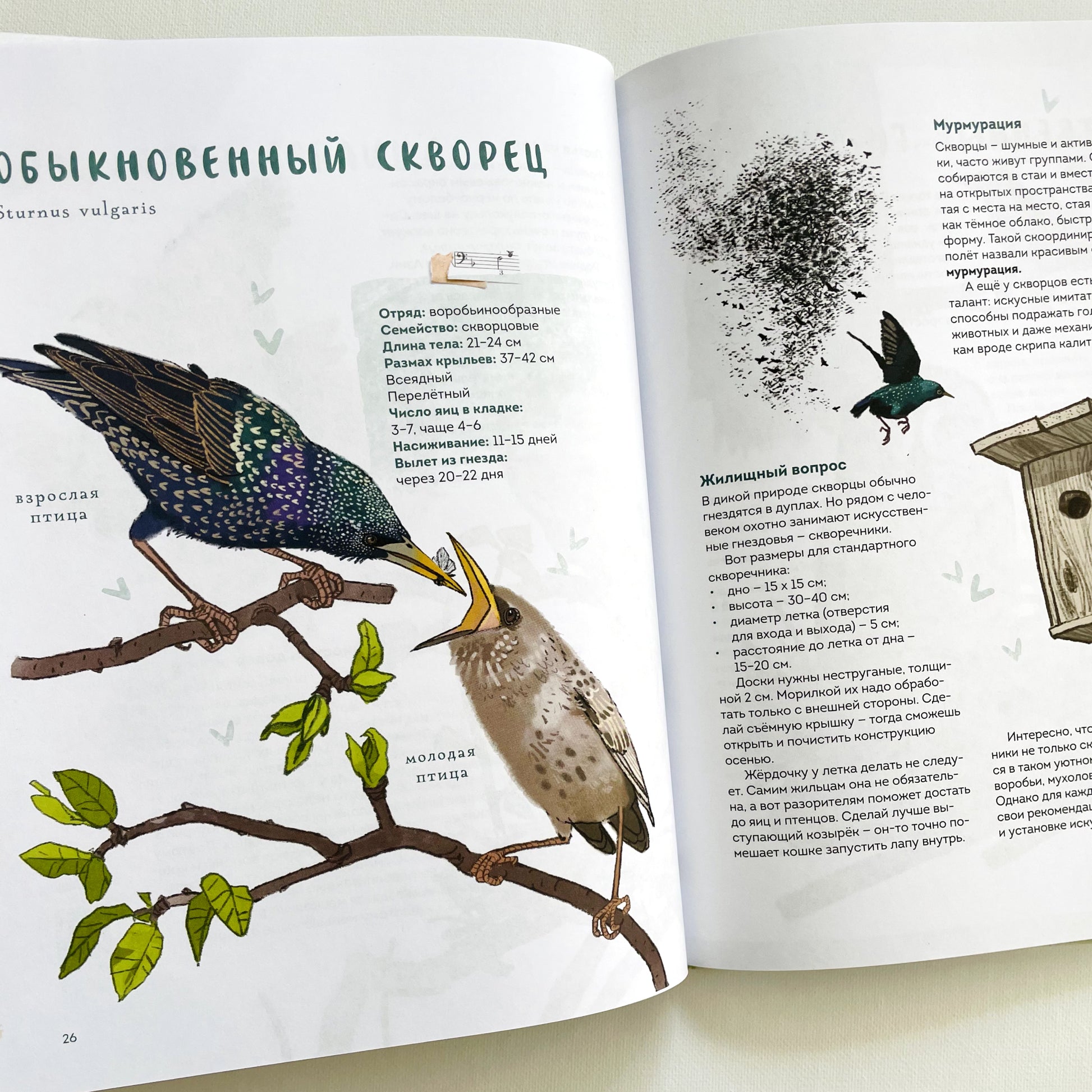 Эта книга, написанная профессиональным орнитологом, расскажет о 42 видах птиц, которых можно встретить в лесах и парках, на полянах и берегах рек, а также в домашнем хозяйстве. Вы научитесь различать птиц по внешнему виду и оперению, узнаете об их смешных и хитрых повадках, разберетесь, как помогать пернатым и всегда ли стоит это делать. А чтобы точно определить птиц при встрече, переходите с помощью смартфона по QR-кодам и послушайте записи их голосов!