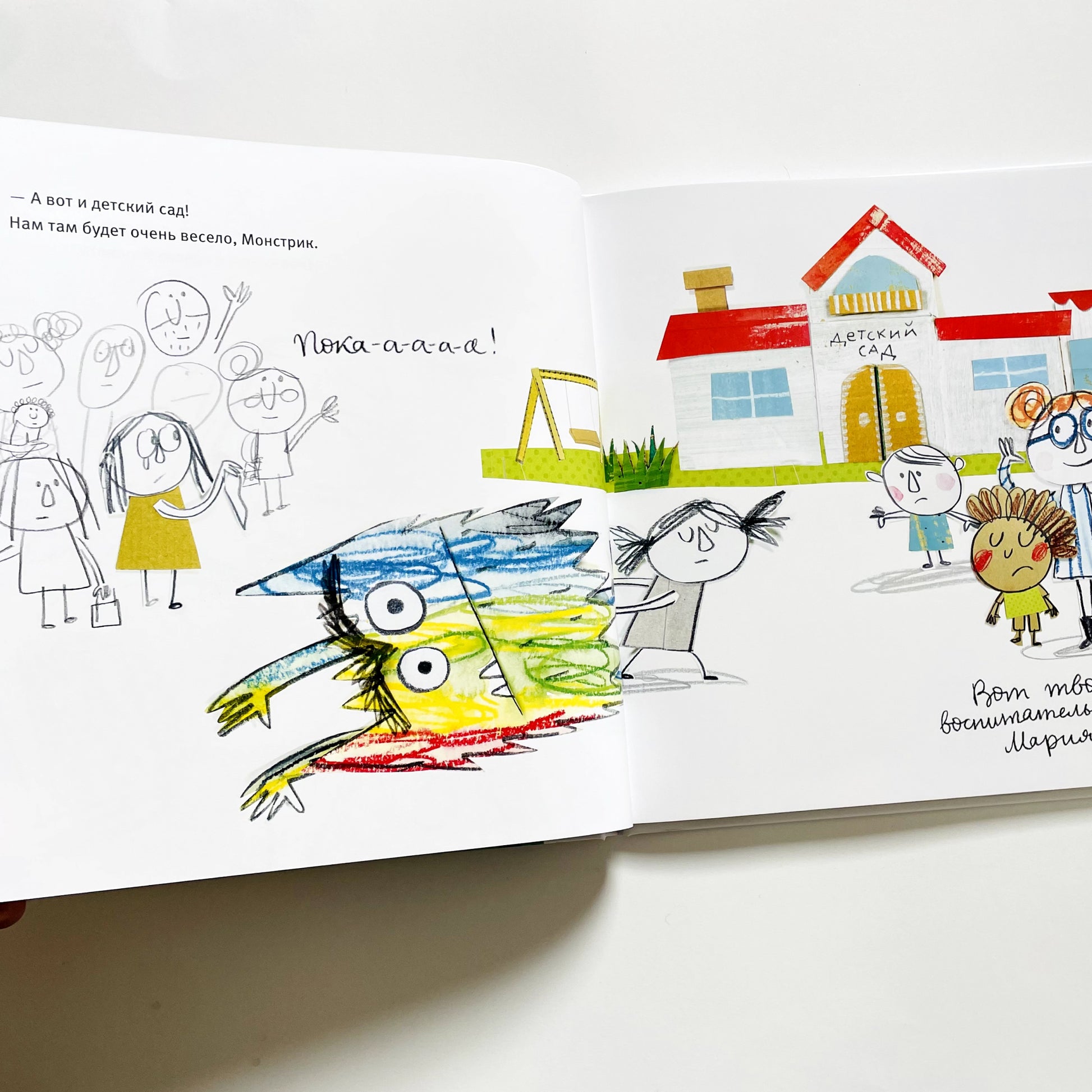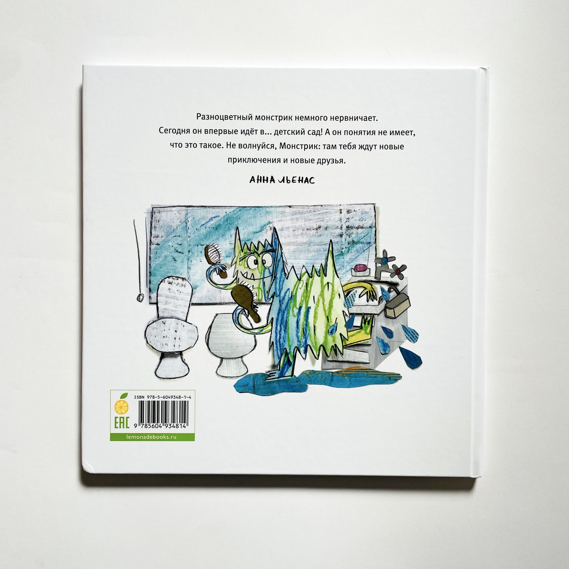 Книжка-картинка, испанской художницы Анны Льенас об адаптации ребенка к детскому саду выполнена в коллажной технике. Продолжение приключений Разноцветного Монстрика и его друзей — международного бестселлера.