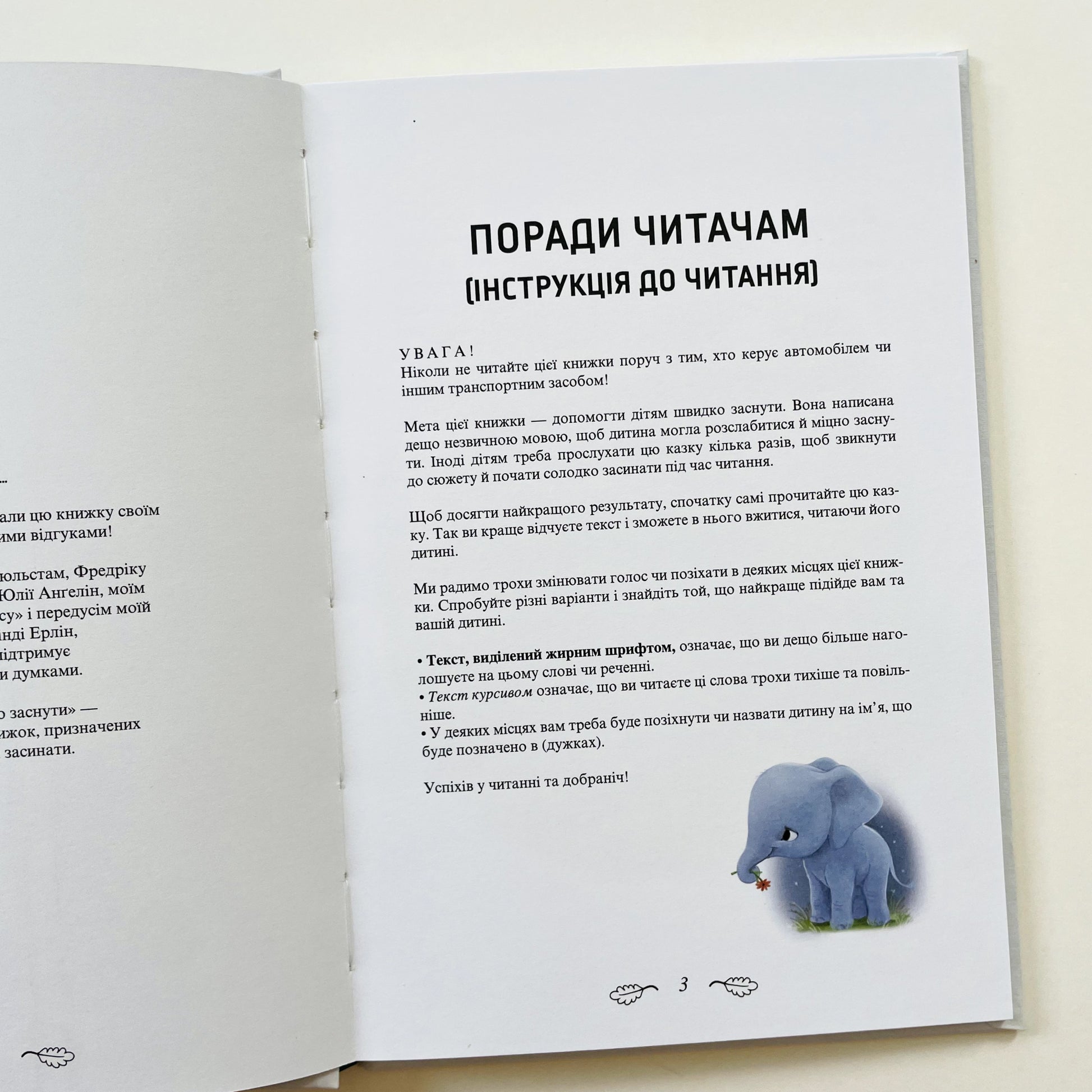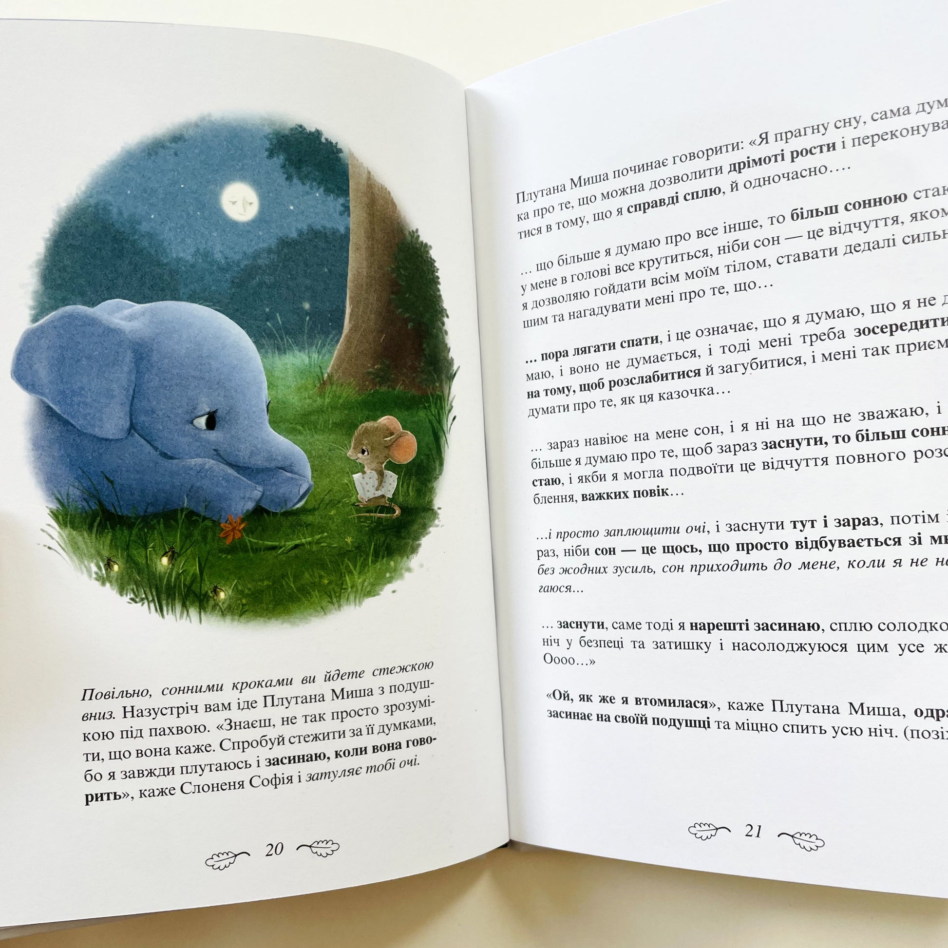 Цэ нова казка, що допоможе батькам укласти малечу спати завдяки слоненяткові Софійці. В основі казки – перевірені психологічні техніки для розслаблення. Тут продумано добір слів і побудову кожного речення, що неодмінно допоможе дитині підготуватися до відпочинку. Солодкий та міцний сон — гарантовано!
