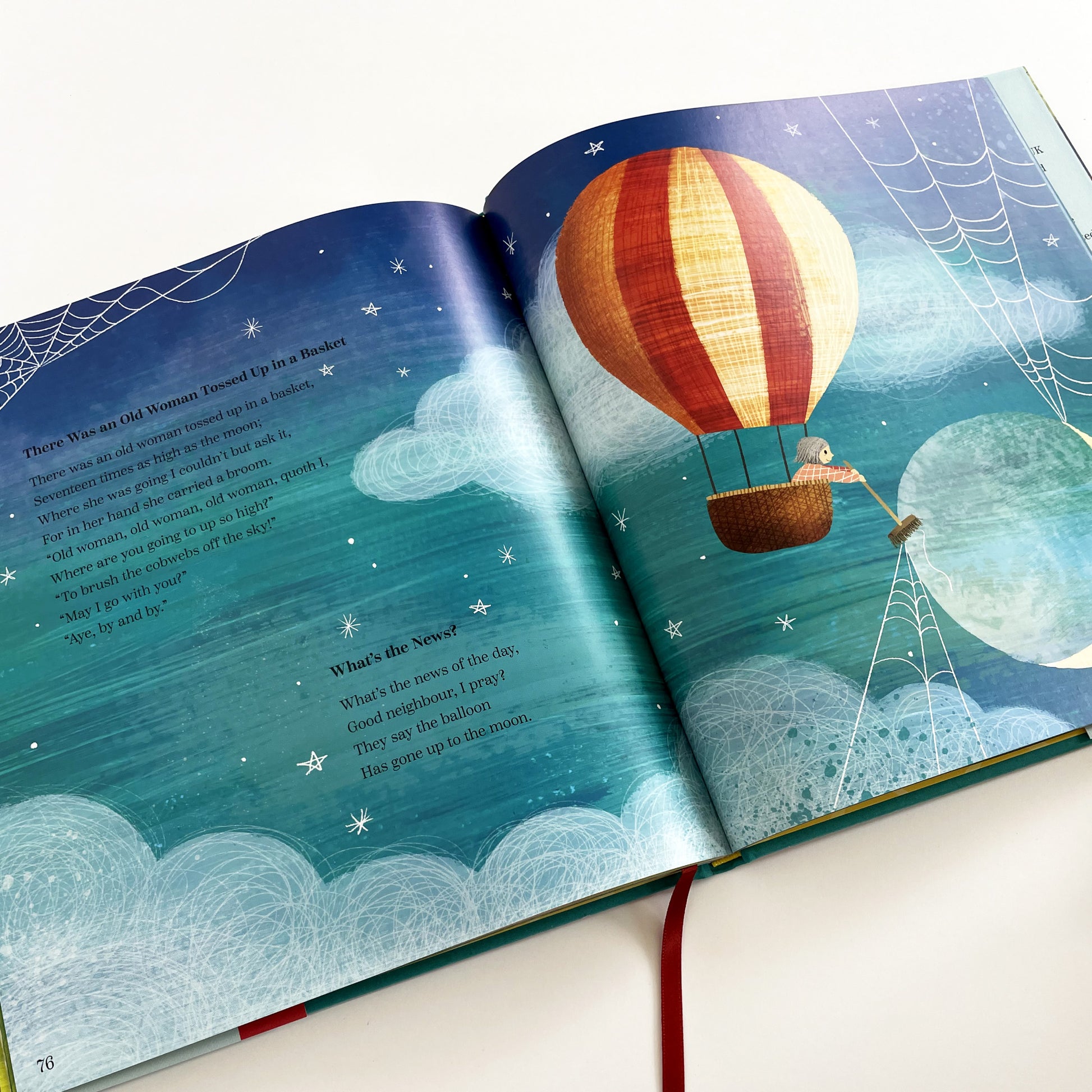 In this captivating collection, you’ll meet favourite friends Humpty Dumpty, the Owl and the Pussy-cat and Little Miss Muffet, as well as mermaids, elves and a whole host of animals at a magical fair. Discover games for playtime, songs for supper time and star-filled lullabies for bedtime. This rich anthology will delight the whole family and is the perfect birthday, Christmas or christening gift to treasure.