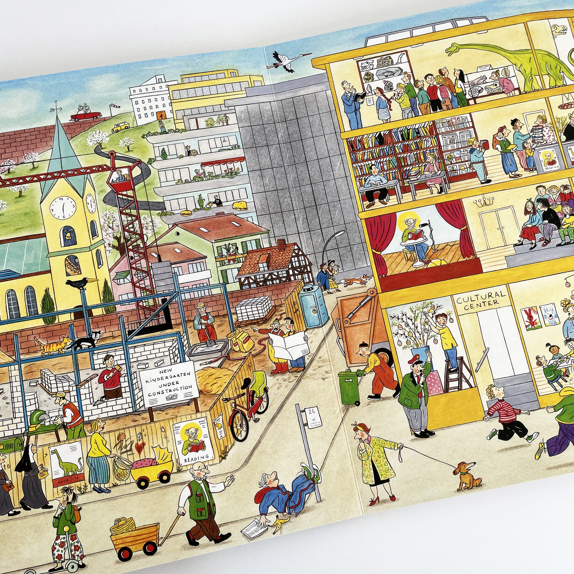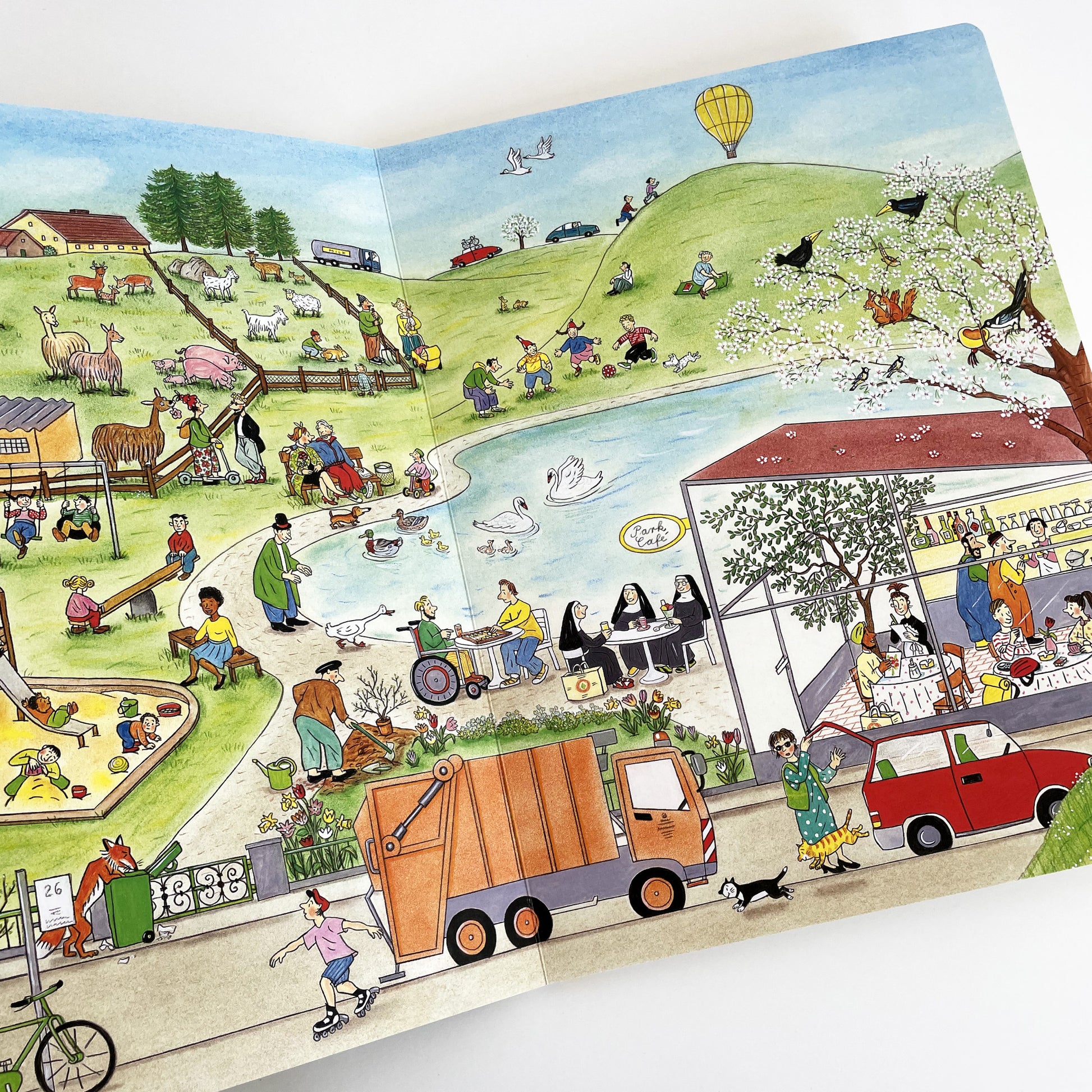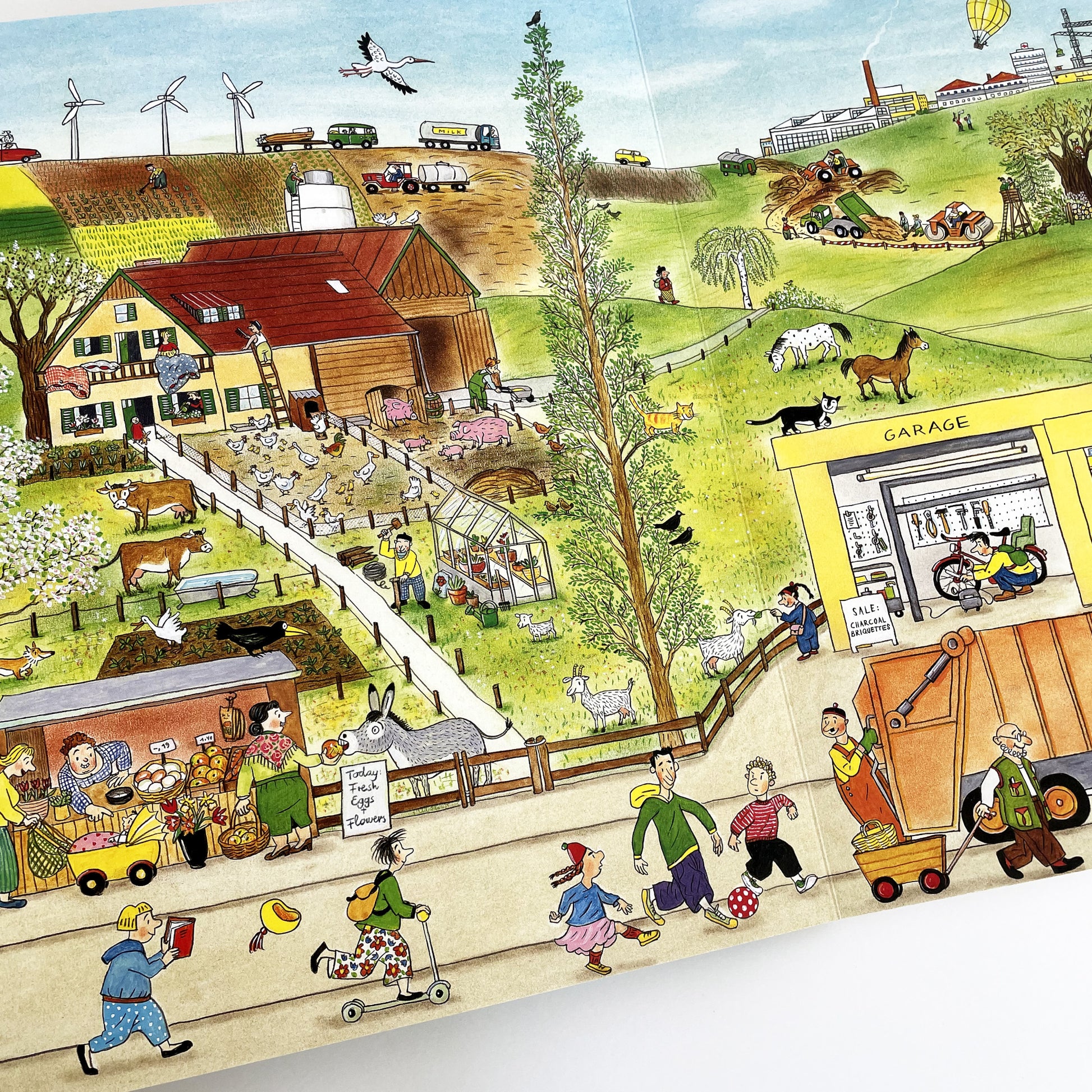 Kids will spend hours poring over the oversized pages of this joyfully illustrated book that looks at a bustling town’s activities in spring.