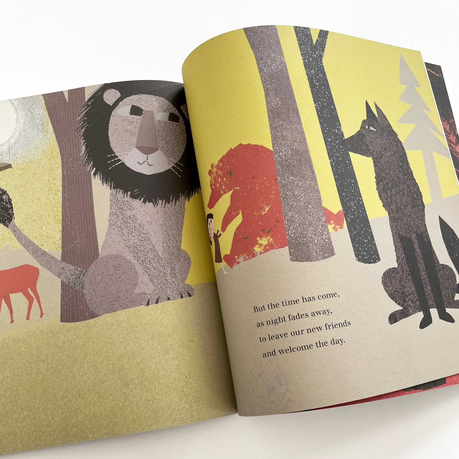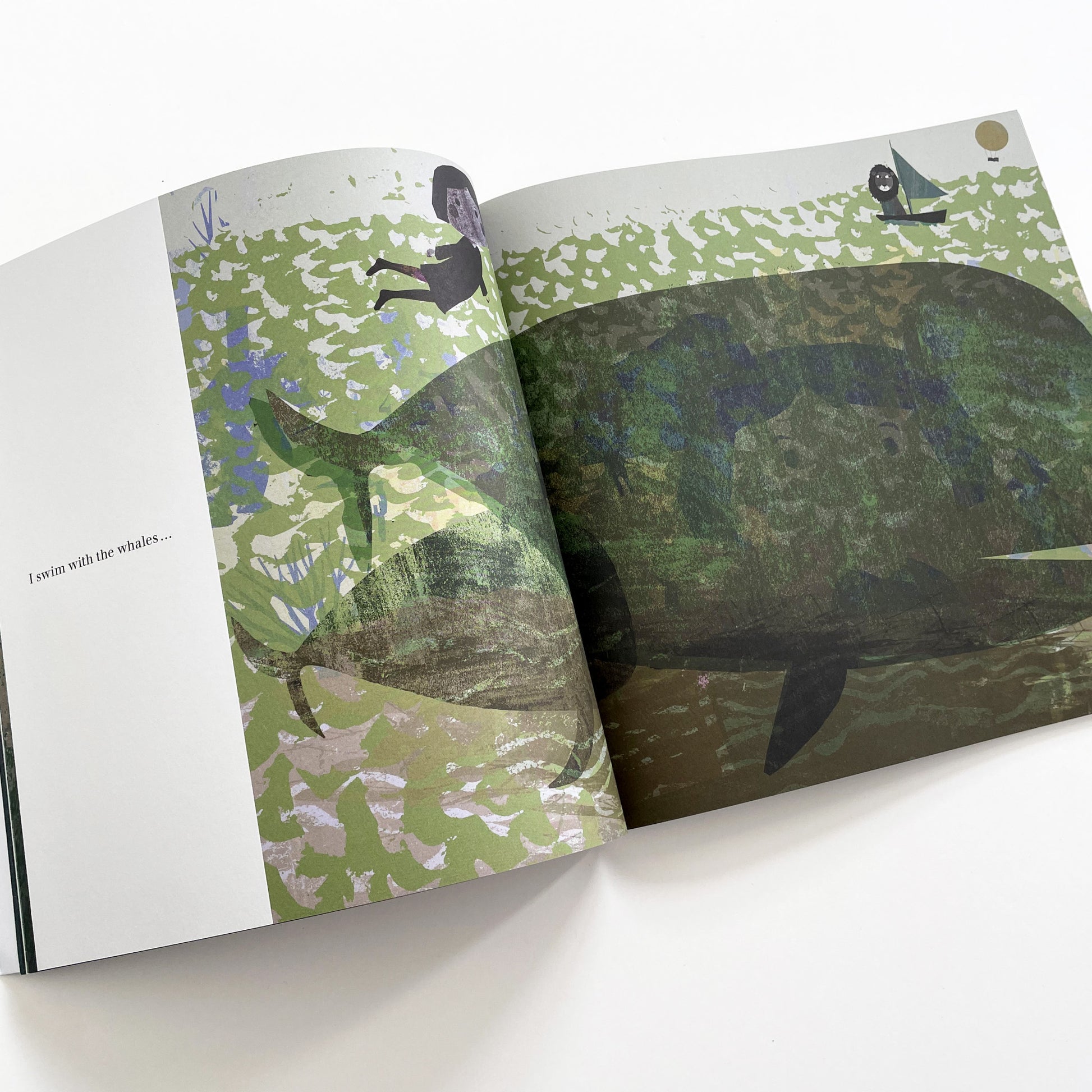 A young girl falls asleep and travels in her dreams through the sky, down to the ocean’s depths and into a jungle. She is accompanied by a lion friend, who eases her fears, gives her confidence and helps her explore the world around her. Along the way she meets whales, jellyfish, grizzly bears and wolves. Then it is time for the moon balloon to take the girl home to her bed, where she awakes, snuggled safely next to the lion, who returns to being a stuffed toy.