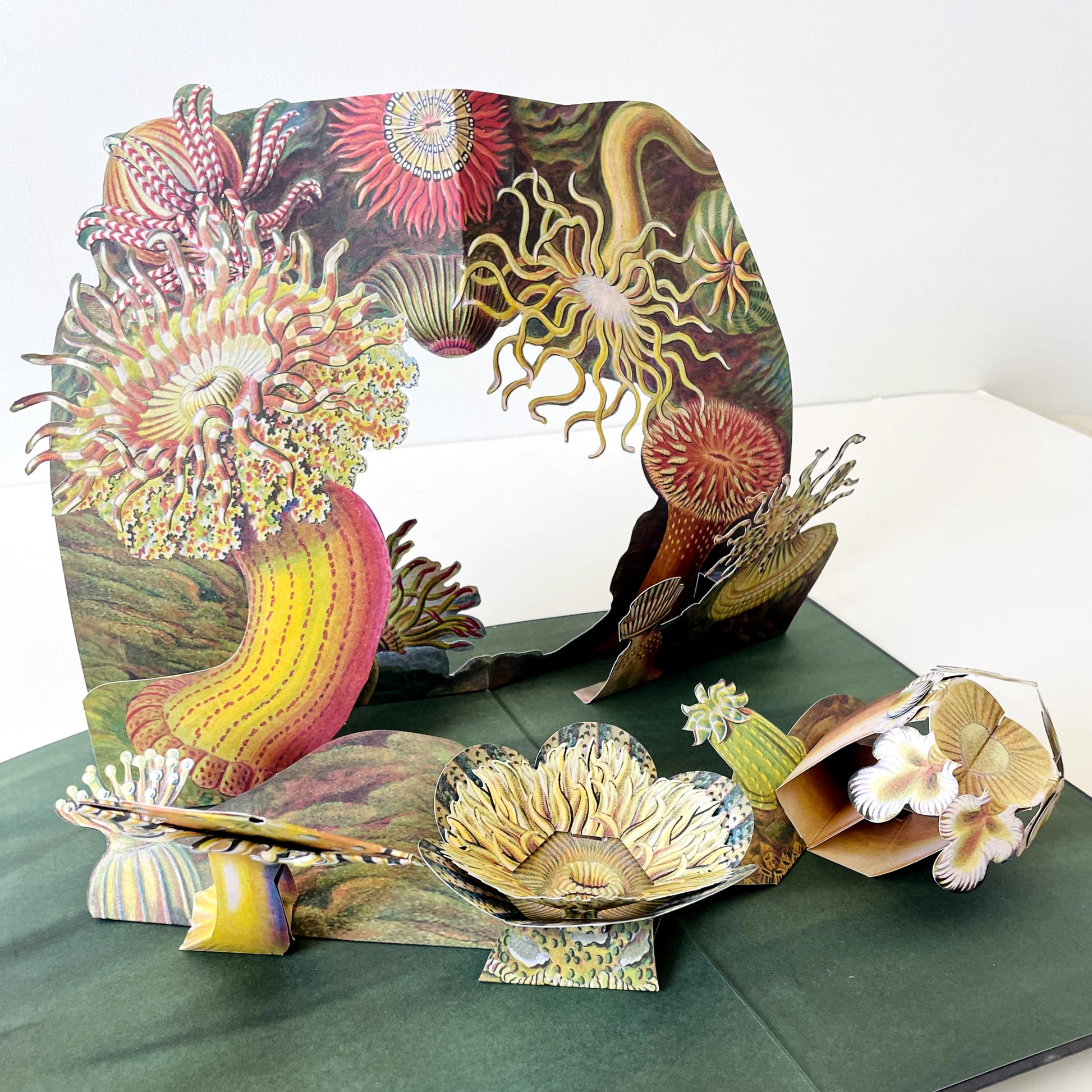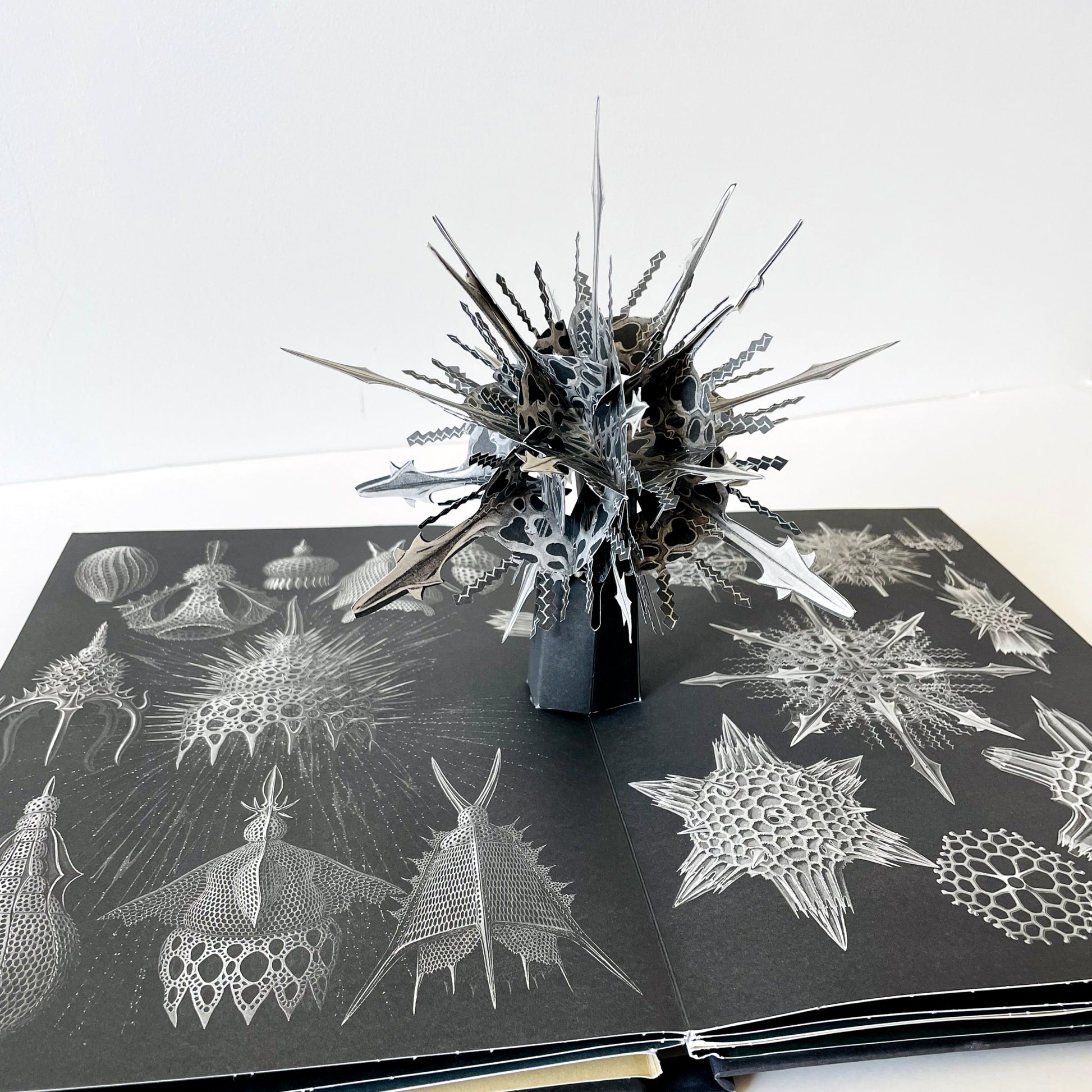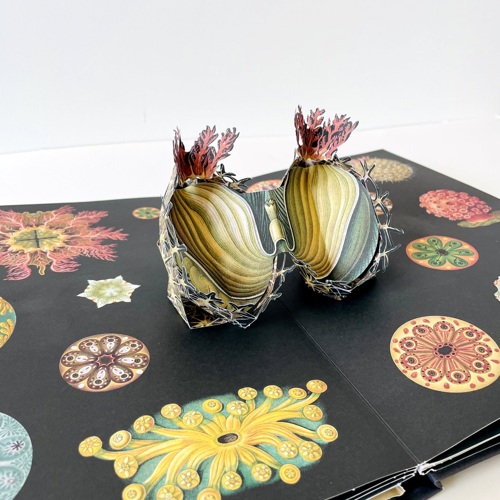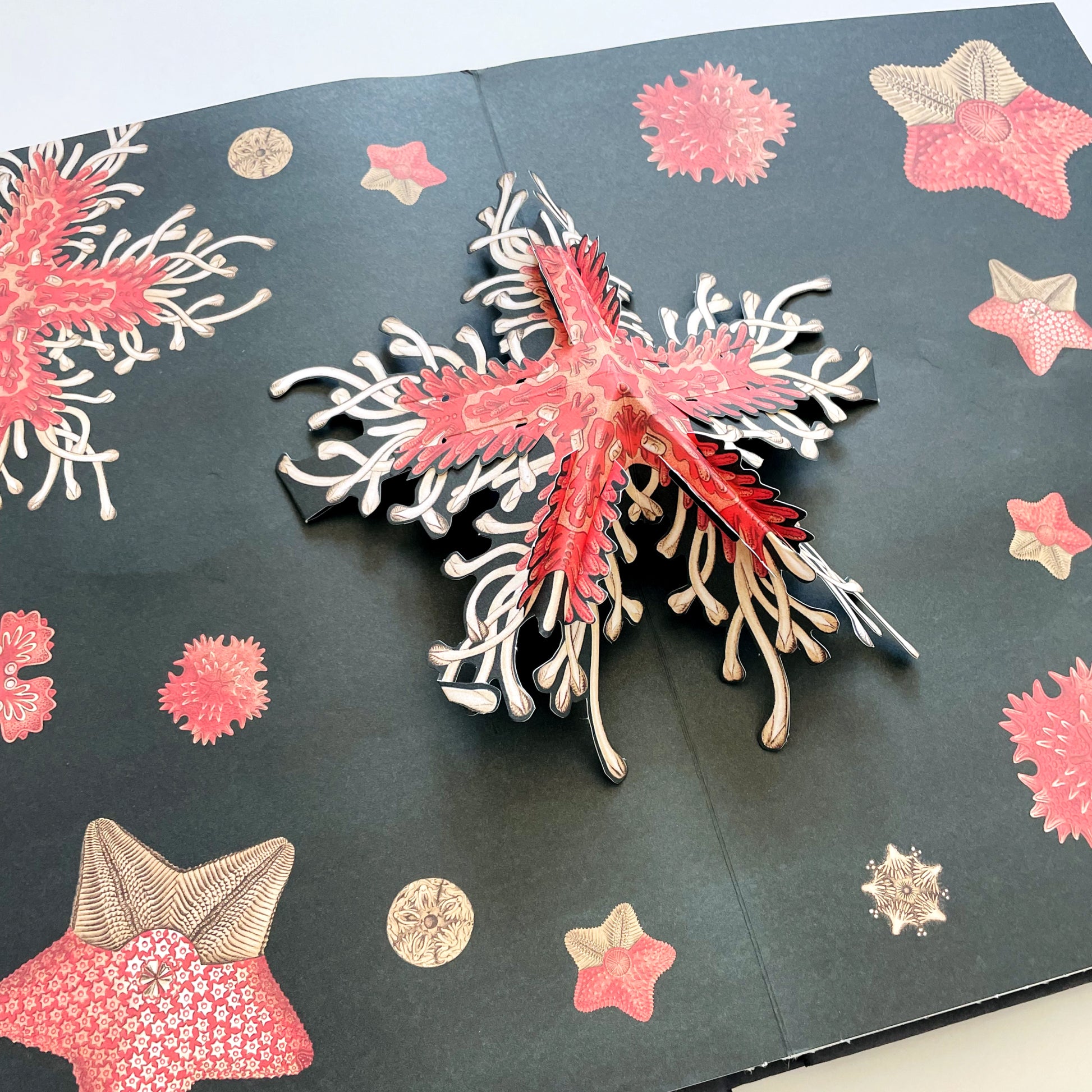 The book Art Forms in Nature is a collection of prints, made by the scientist Ernst Haeckel, of an enormous variety of flora and fauna from the sea–including microscopic Radiolaria, starfish, and jelly fish. Since Prestel published it in 1998, the book has been a favorite with artists, designers, illustrators, and anyone who enjoys the wondrous forms of the natural world. Now paper engineer Maike Biederstaedt has transformed Haeckel’s transcendent work into a threedimensional book that allows readers to appreciate Haeckel’s vivid colors, exceptional precision, and fascination with patterns and geometry.