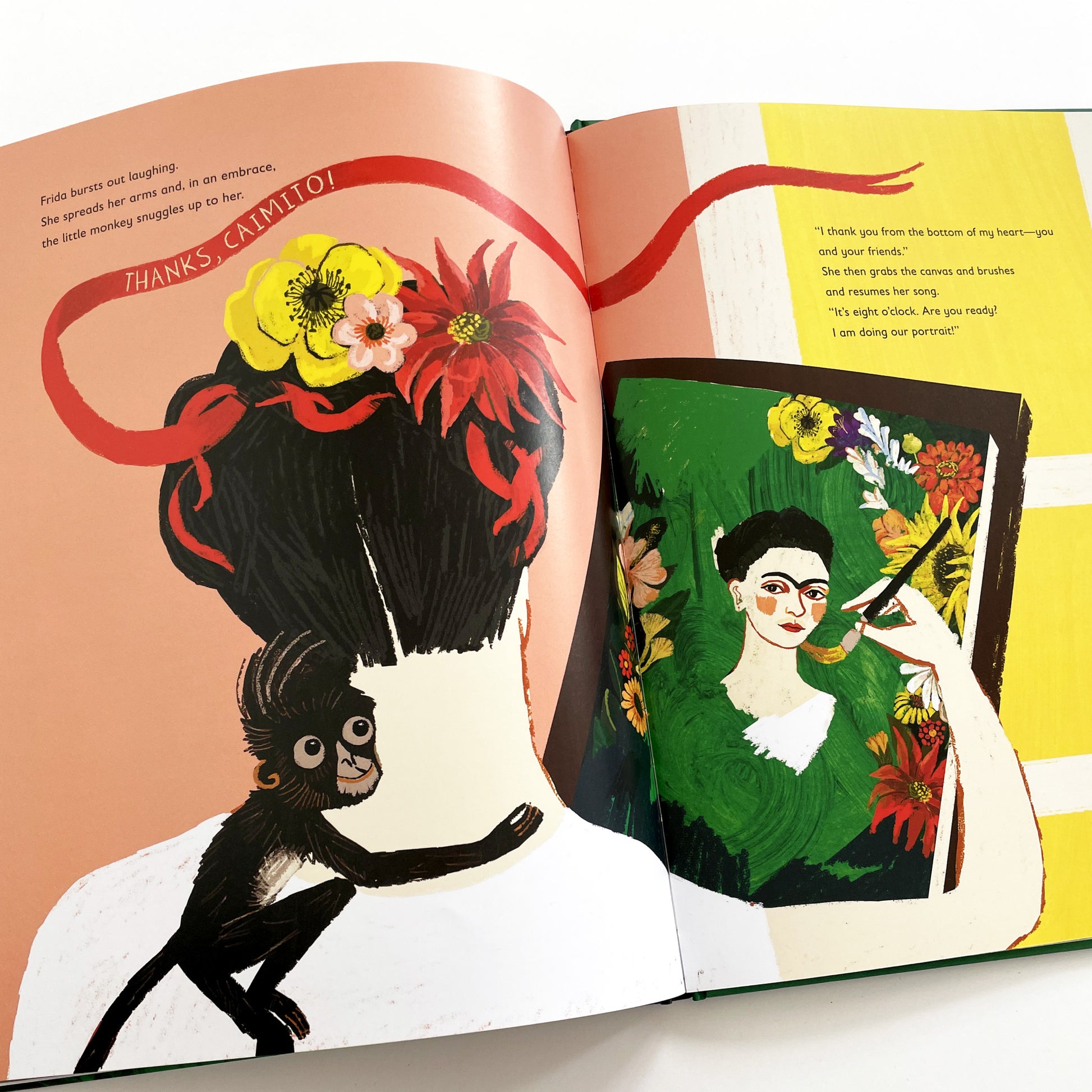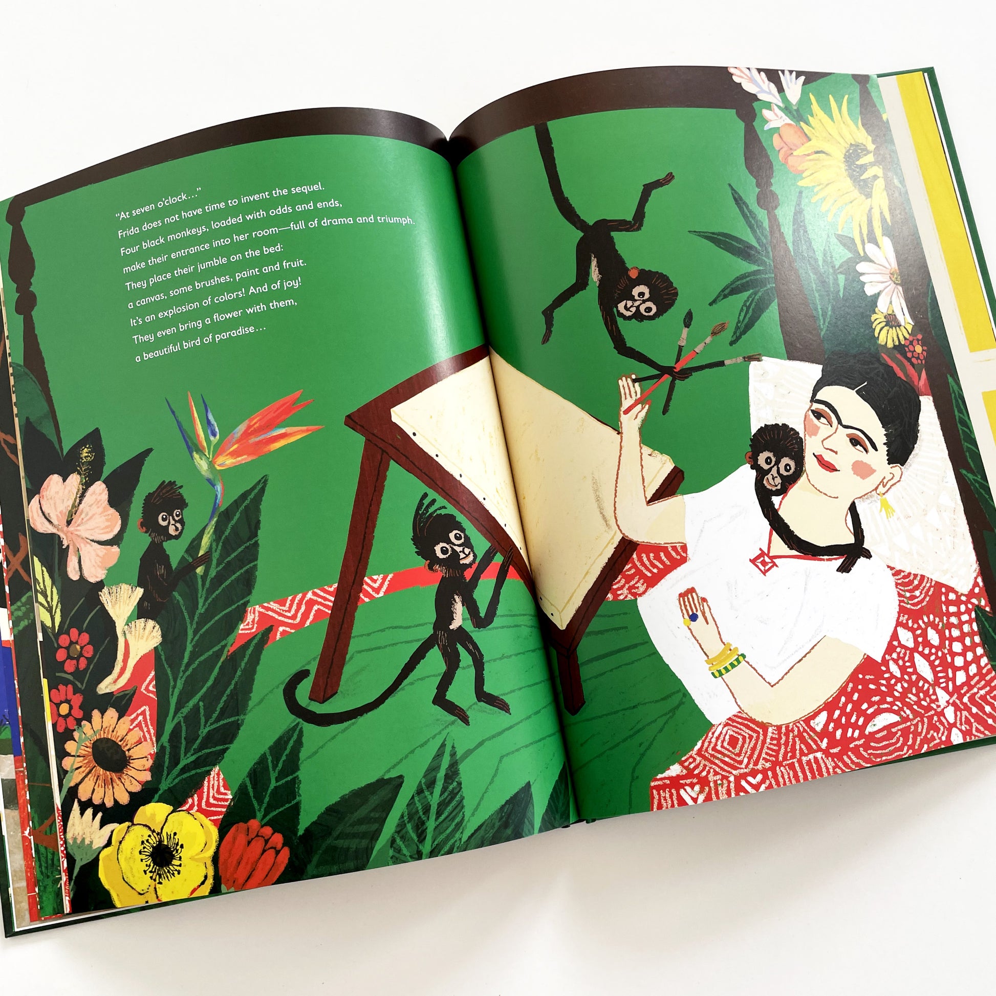 This beautifully imagined tale of artistic struggle and perseverance is inspired by Frida Kahlo’s Self Portrait with Monkeys. Illustrated with paintings that recall Kahlo’s bold, colorful style, it takes readers inside Kahlo’s bedroom, where she typically painted, and shows how the artist brilliantly incorporated the natural world into her work.