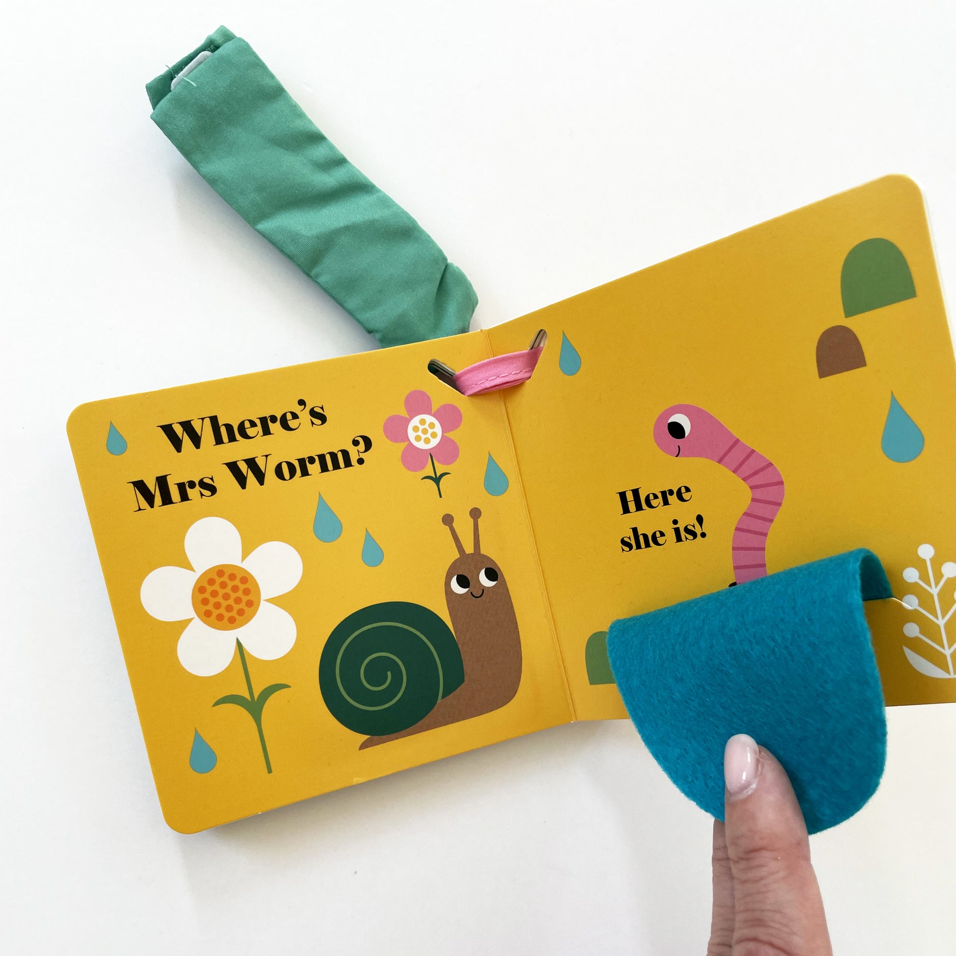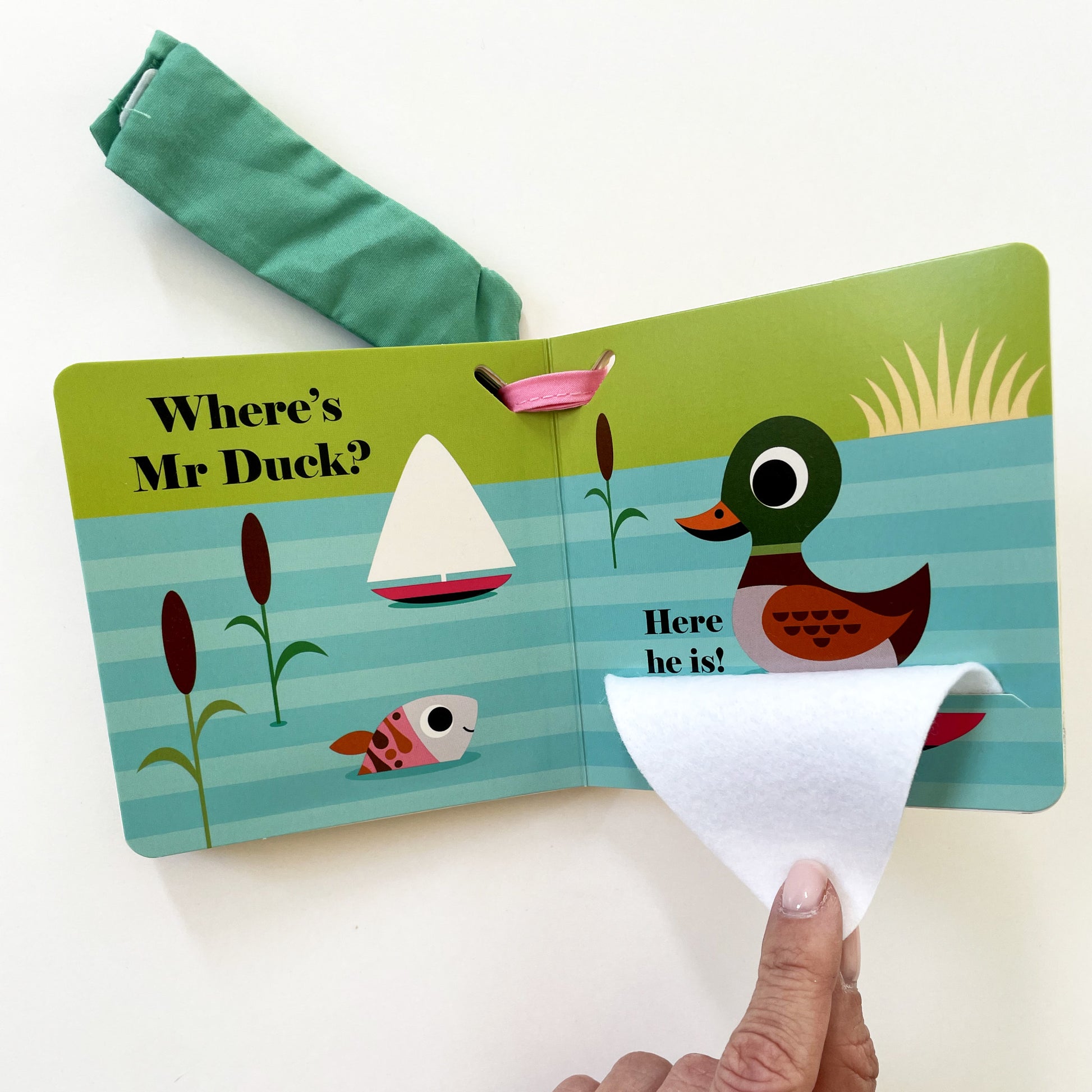 In Where’s Mr Duck?, you’re on the look out for Mrs Butterfly, Mr Frog, Mrs Worm and Mr Duck himself!