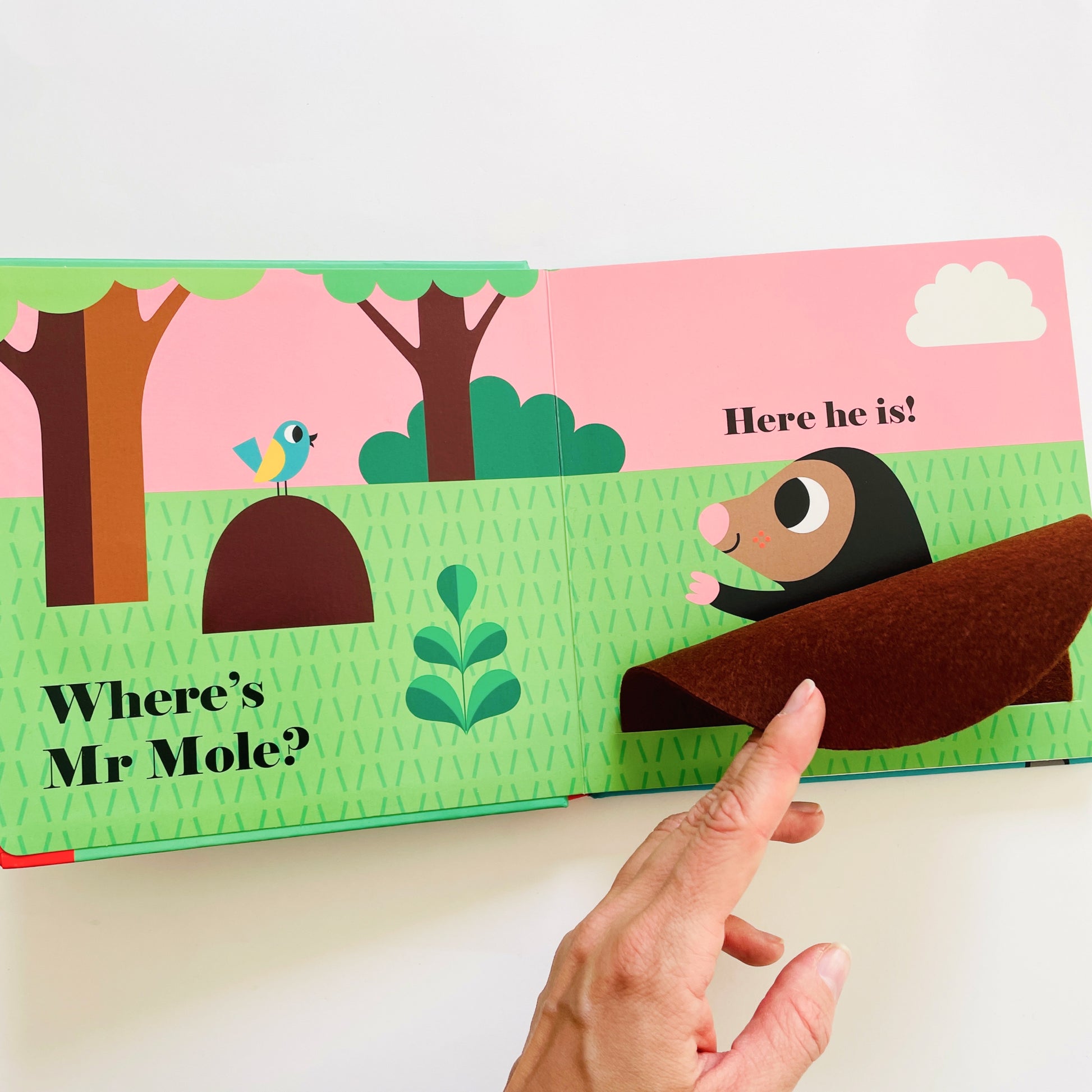 In Where’s Mrs Fox?, you’re on the look out for Mr Mole, Mrs Hare, Mr Woodpecker and Mrs Fox herself!