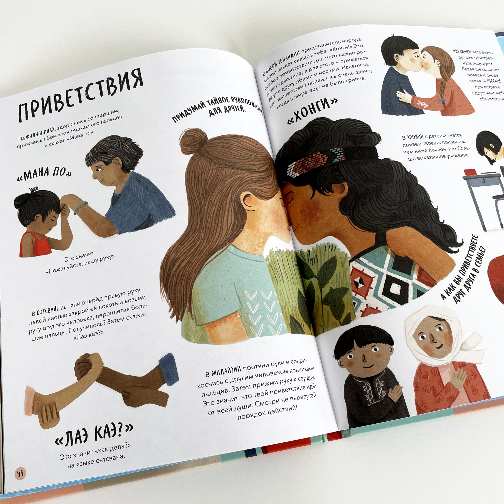 В этой книге ты узнаешь, почему у эфиопских детей нет фамилий, чем завтракают в Исландии и Марокко и в какой стране можно найти настоящую плавучую школу. А еще научишься говорить «спасибо» и «пожалуйста» на разных языках мира, чтобы точно подружиться с новыми друзьями из других стран. Ведь все мы такие разные и в то же время такие похожие!