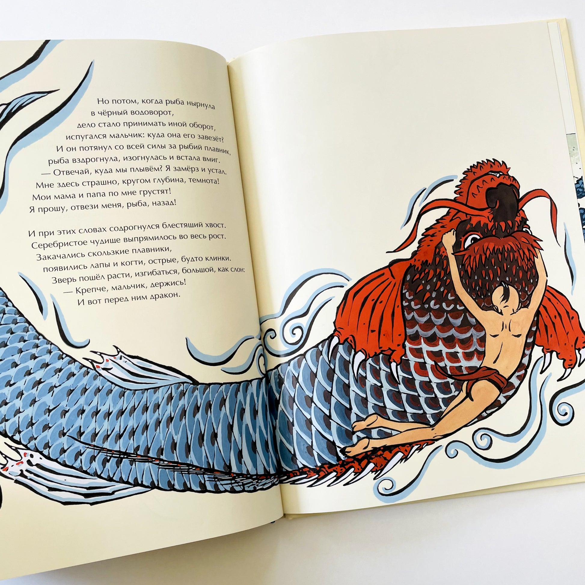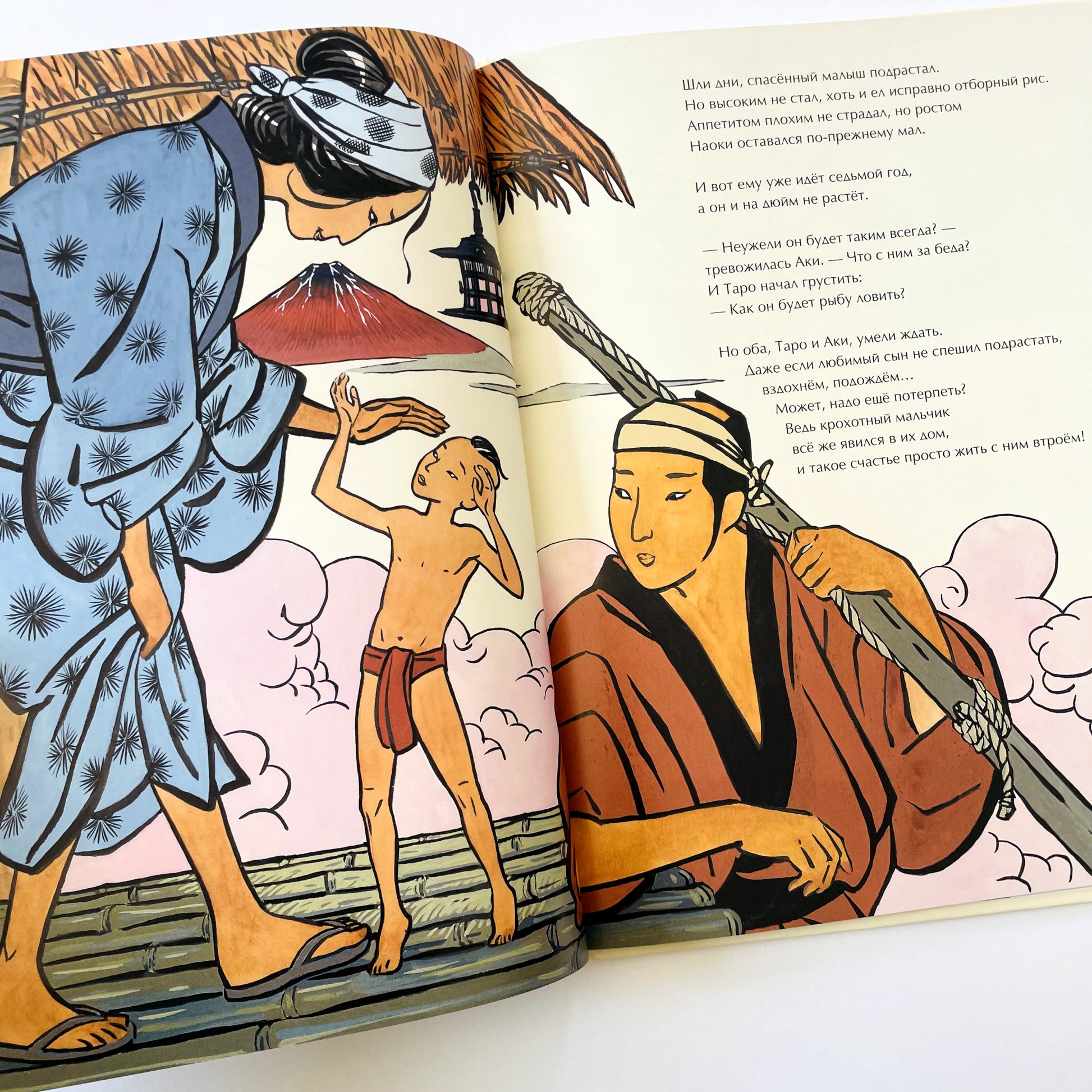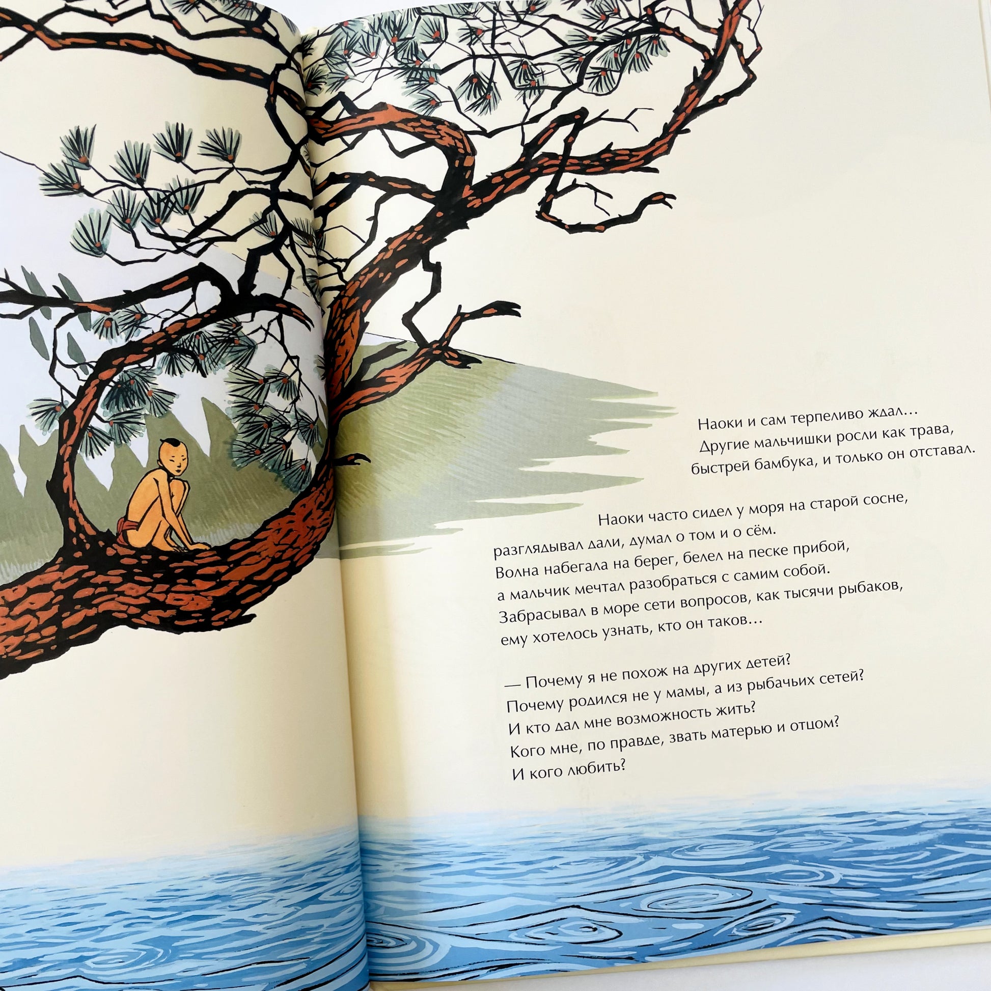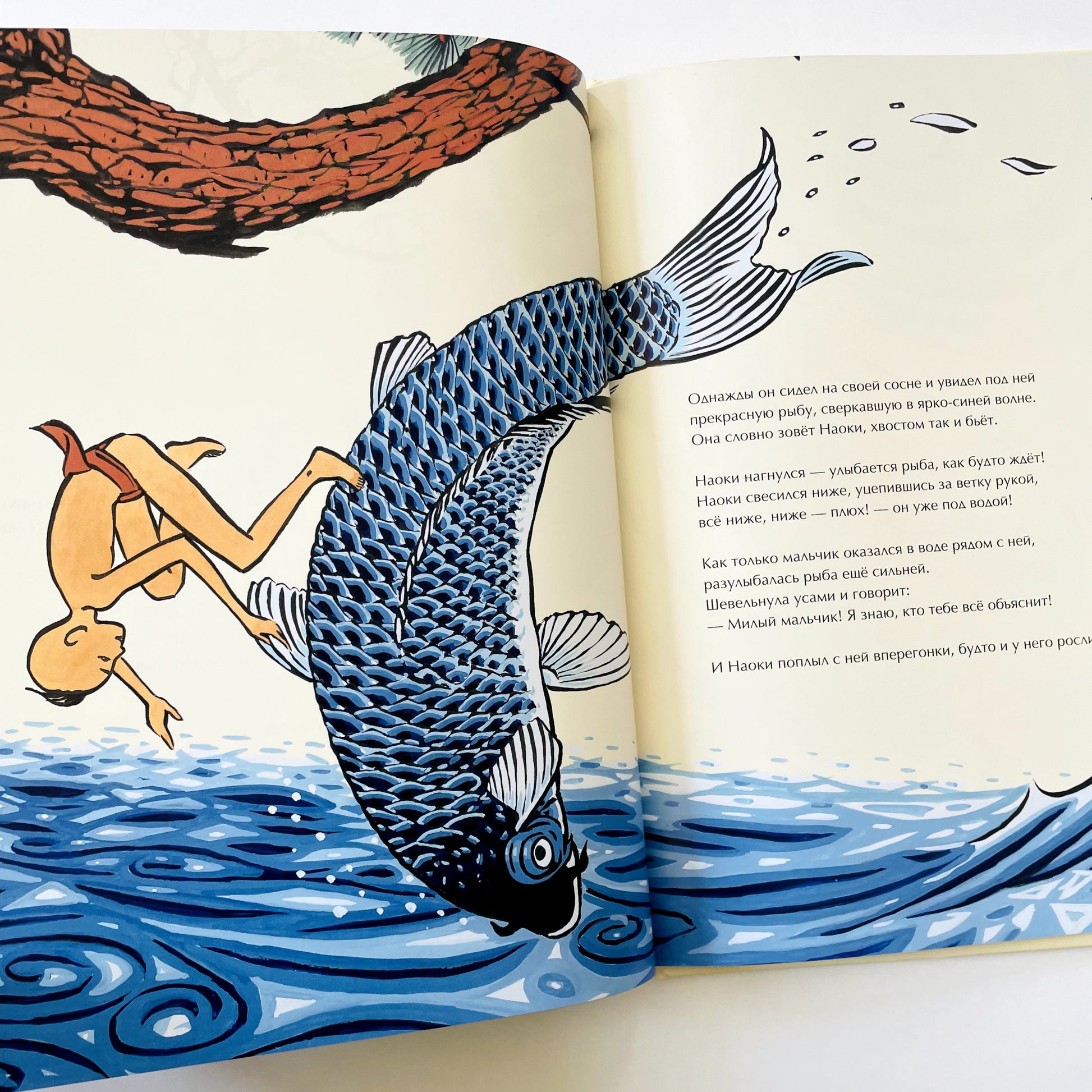 Эту поэтичную историю автор и иллюстратор создали под впечатлением от знаменитой гравюры Кацусики Хокусая «Большая волна в Канагаве».
