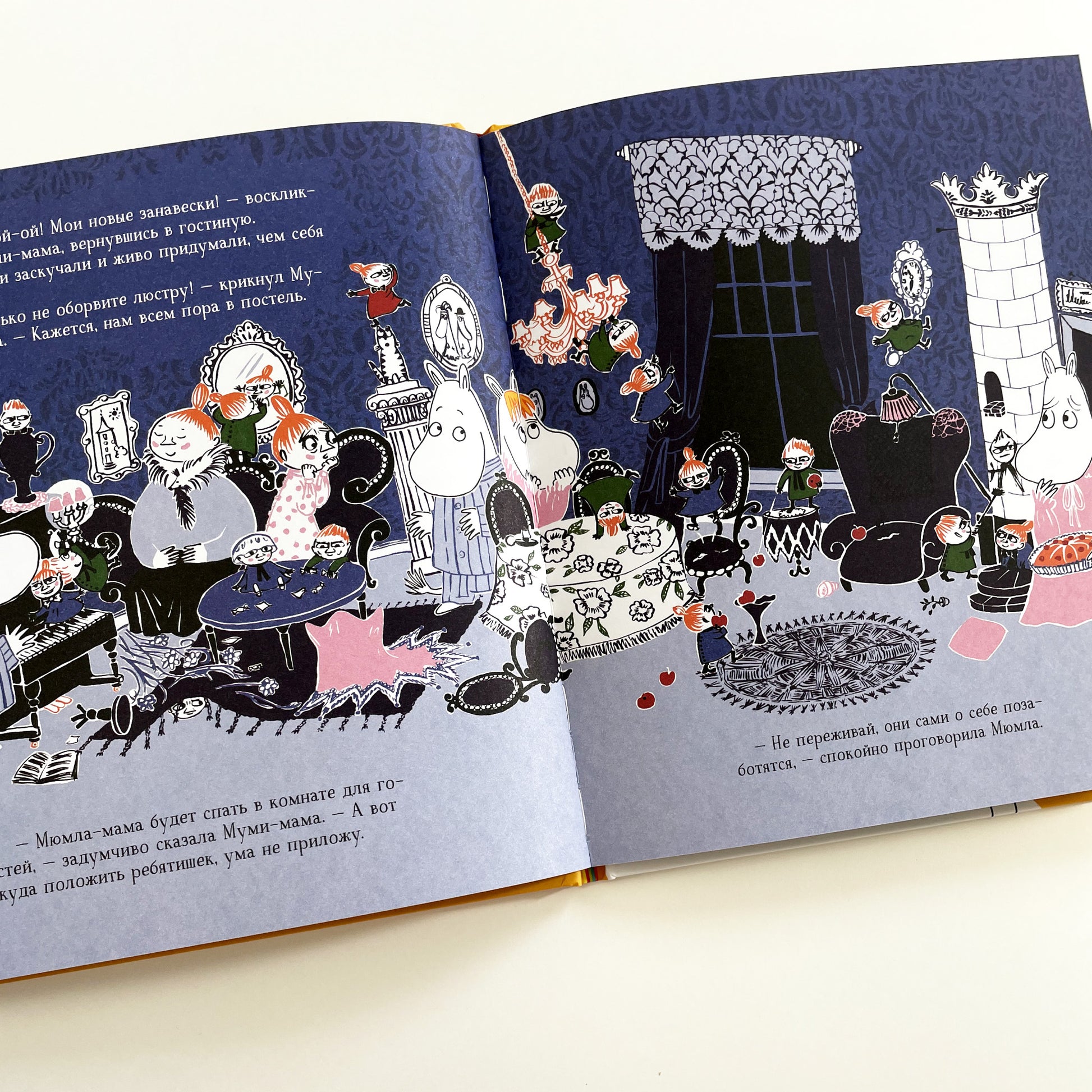 Однажды ночью в дверь муми-троллей постучали, да так сильно, что весь дом затрясся, а чашки чуть не посыпались с полок. Но за дверью оказались не грабители, не чудовища и не дракон, а Мюмла-мама со всеми своими малышами.