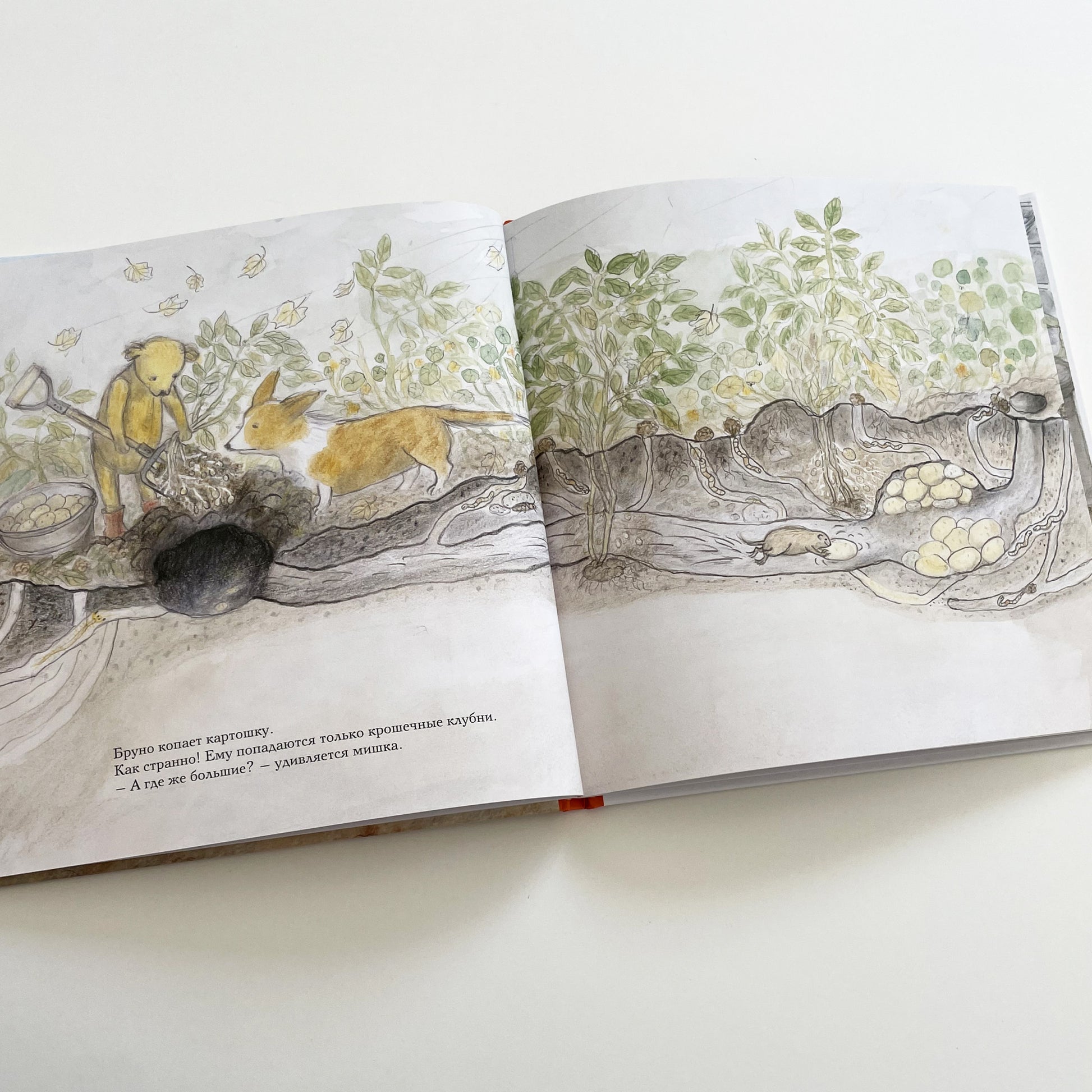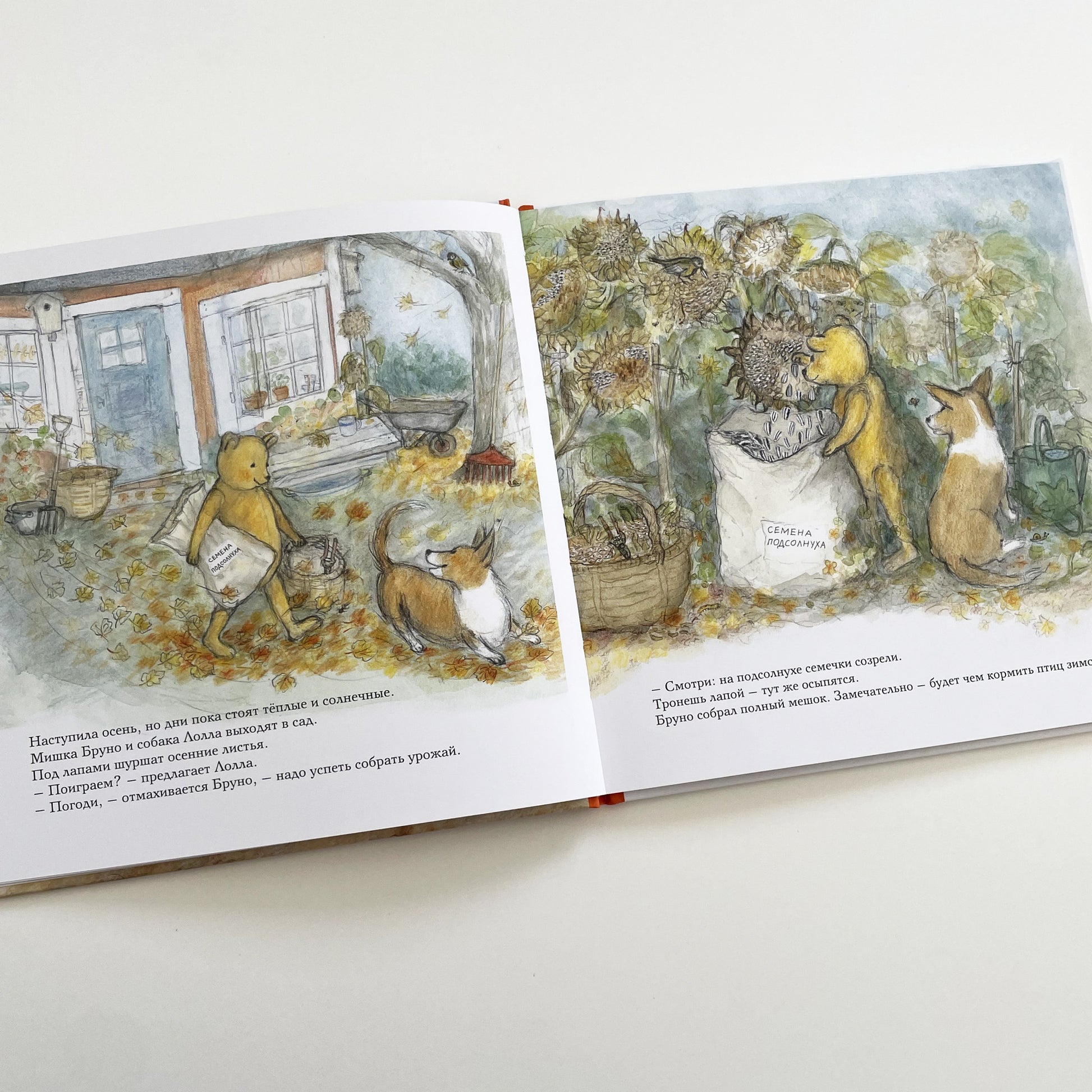 Осень – хлопотливая пора для мишки Бруно и собаки Лоллы. Они собирают урожай, делают запасы на зиму, сгребают в кучи опавшие листья, заготавливают семена для будущих посевов, а еще варят тыквенный суп и пекут яблочный пирог.
