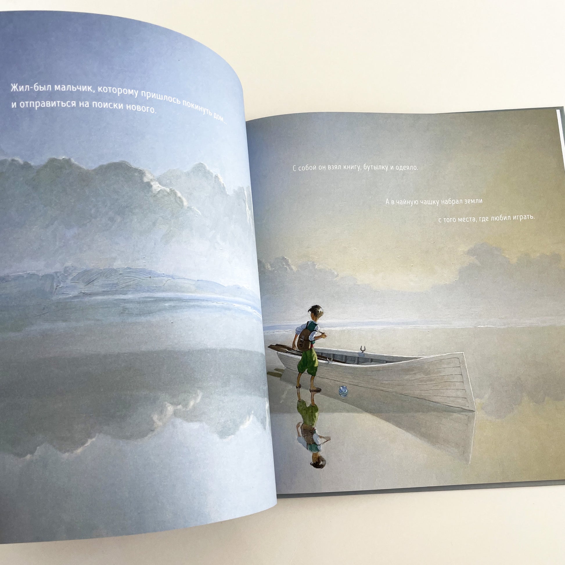 Жил-был мальчик, которому пришлось покинуть дом... и отправиться на поиски нового. С собой он взял книгу, бутылку и одеяло. А в чайную чашку набрал земли с того места, где любил играть.