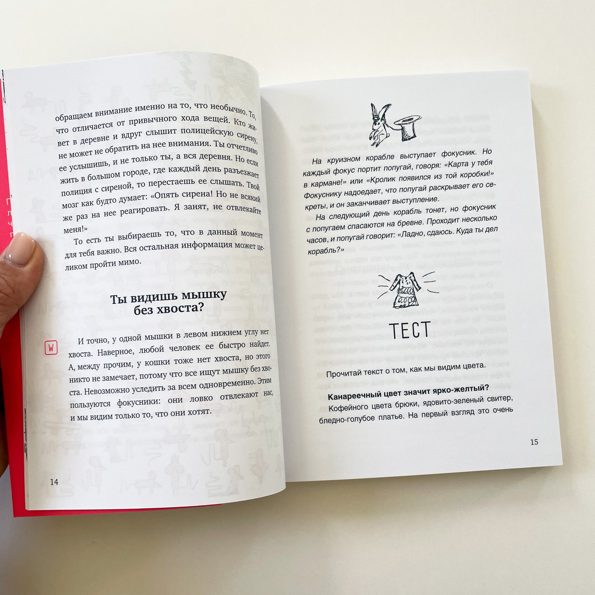 Эта книга — о самом интересном объекте для изучения. О нас самих. О том, что и как мы видим, как мы помним, как мы на самом деле чувствуем вкус, как нас вводят в заблуждение фокусники, о том, как работает реклама, как на нас влияет мнение не только близких, но и совсем незнакомых людей. С помощью примеров, тестов и игр вы с друзьями сможете проверить, как все это работает на практике.