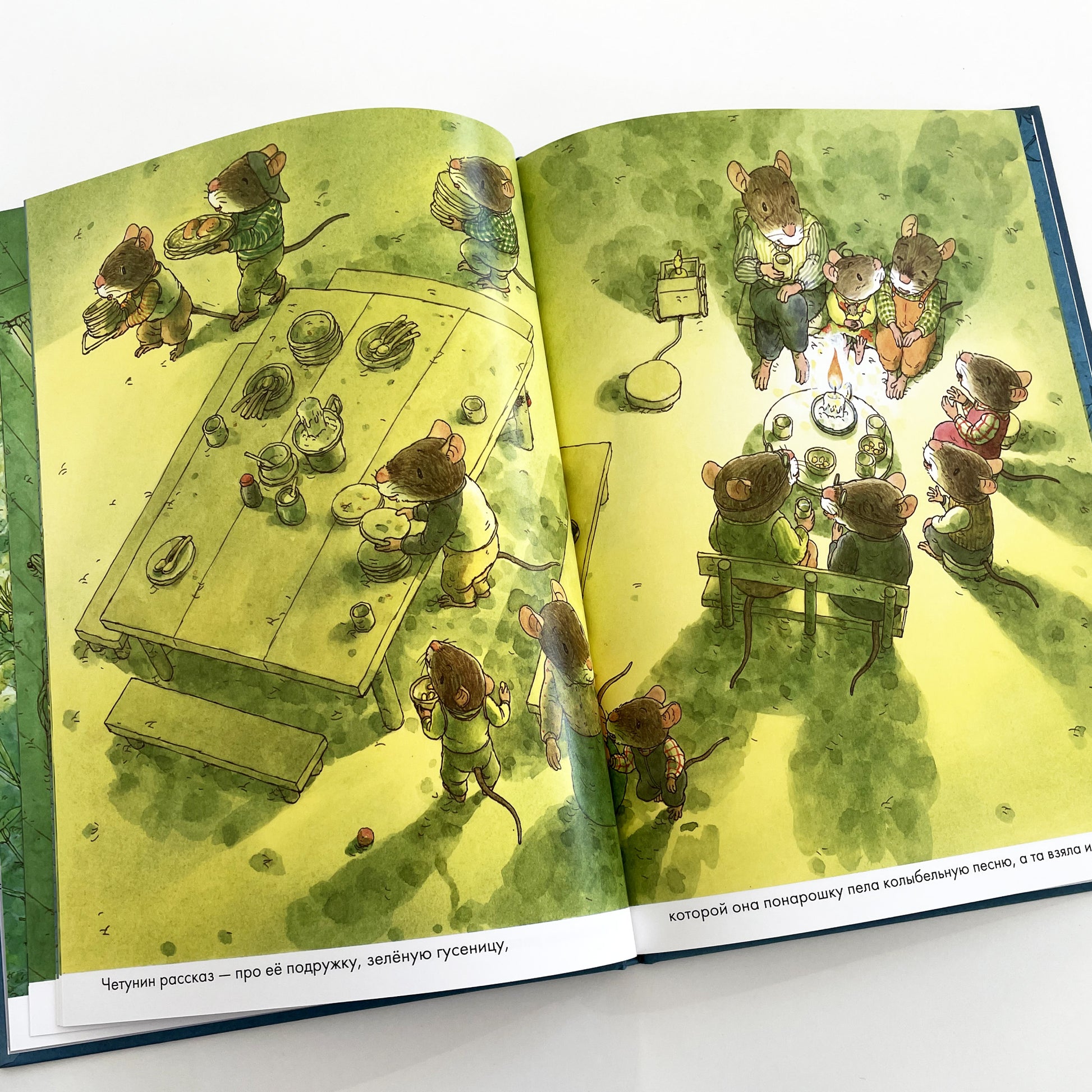 «14 лесных мышей» — очень популярная в Японии и многих европейских странах серия книг о красоте повседневности и о жизни трех поколений мышиного семейства: бабушки, дедушки, мамы, папы и еще десяток мышат.