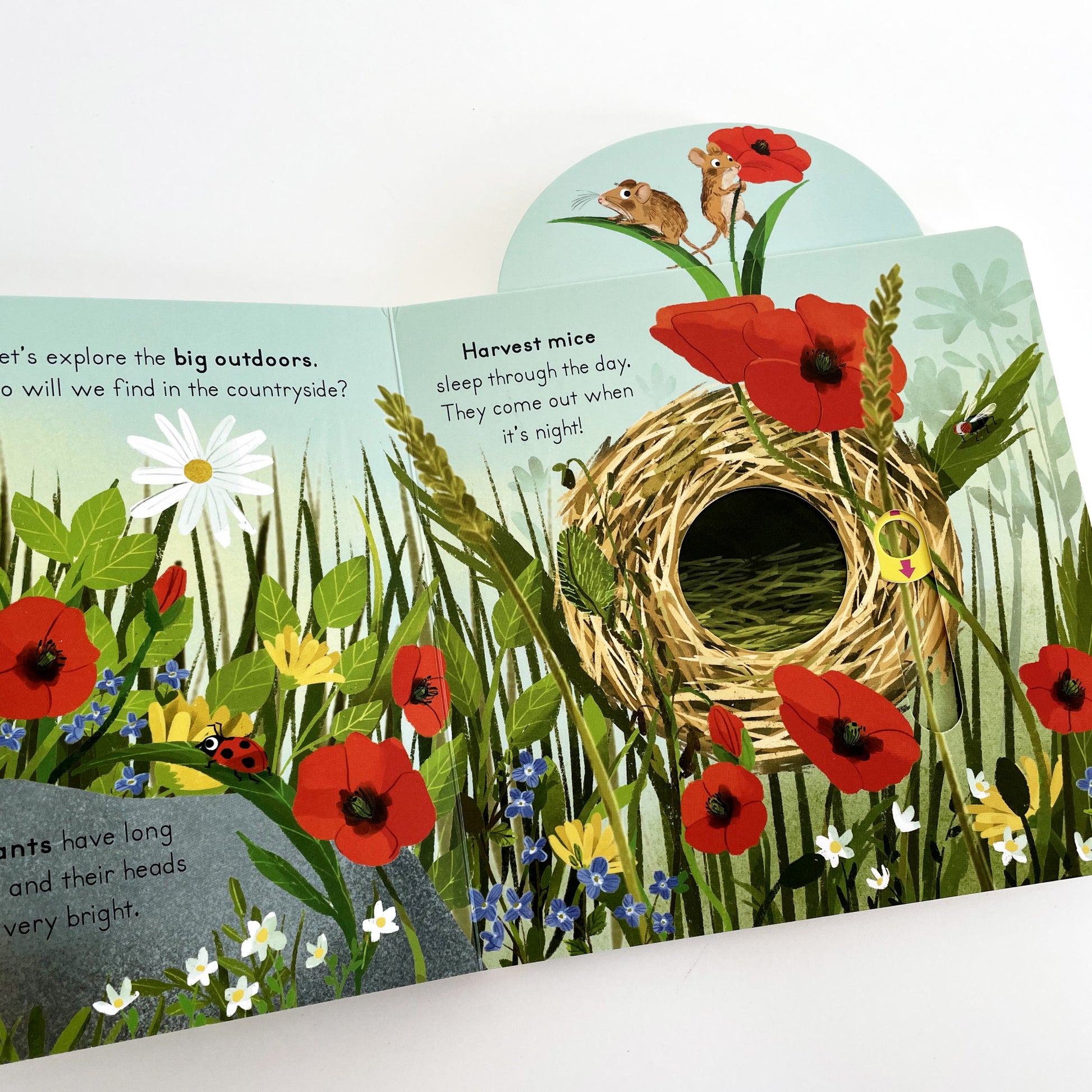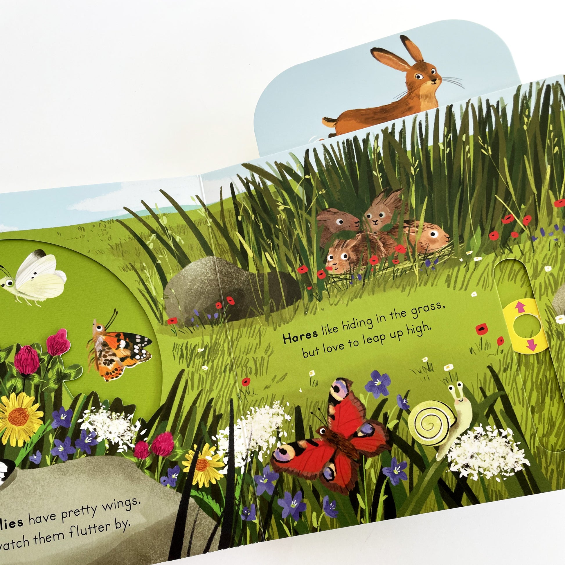 In this first countryside book, there are hares to find in the grass, bees to buzz between the flowers, swallows to swoop through the sky and many more countryside creatures to bring to life with the moving parts.