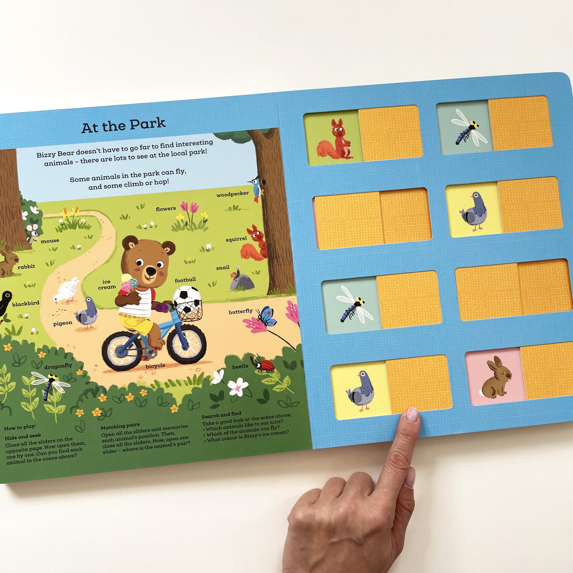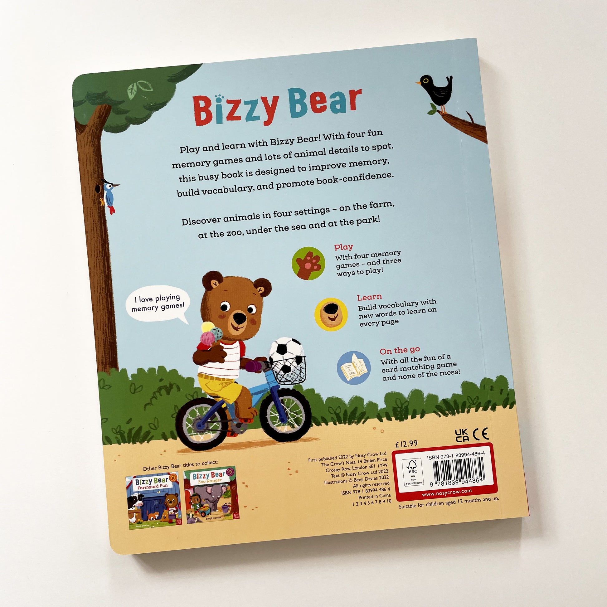 With four fun scenes, three memory games and lots of animal details to spot, this busy book is designed to improve memory, build vocabulary, and promote book-confidence. And with no messy cards to tidy up afterwards, parents will love it too!