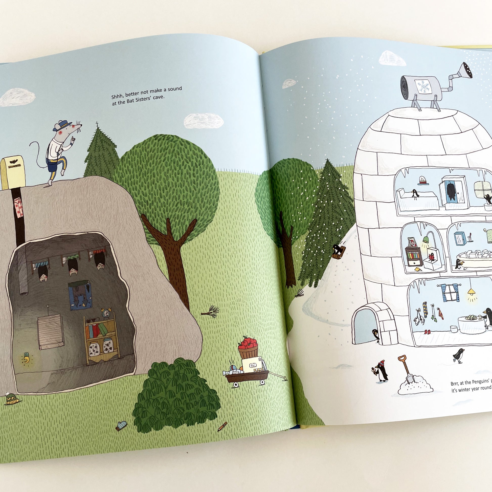Have you ever taken a peek inside a rabbit’s toilet or entered the house of a crocodile? Join Mr Postmouse on his daily rounds and visit the extraordinary homes of Mr Bear, Señor Snake, Madam Dung Fly, Mr Wolf, the Penguins, and many other animals.