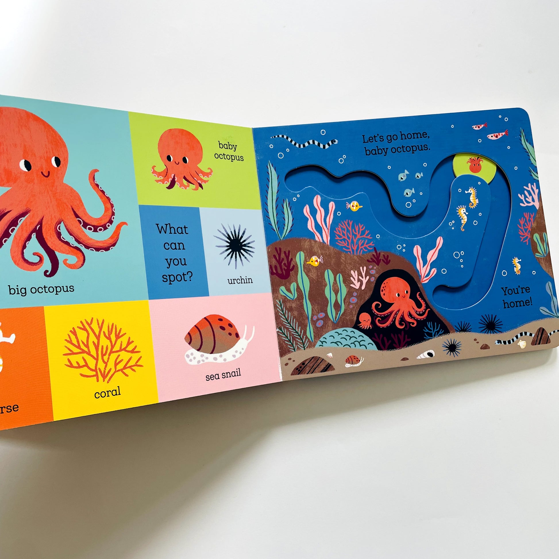 Meet shark, crab, octopus and puffin – four adorable baby animals who are lost at sea! With easy-to-use moving parts and four unique tracks to develop hand-eye coordination and concentration, babies and toddlers will enjoy taking the baby animals home in this robust, satisfying board book.