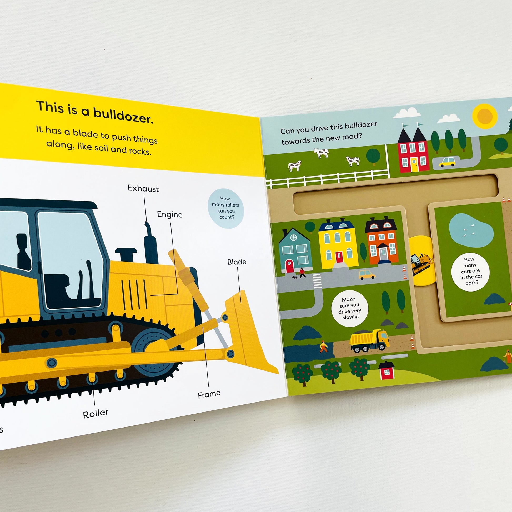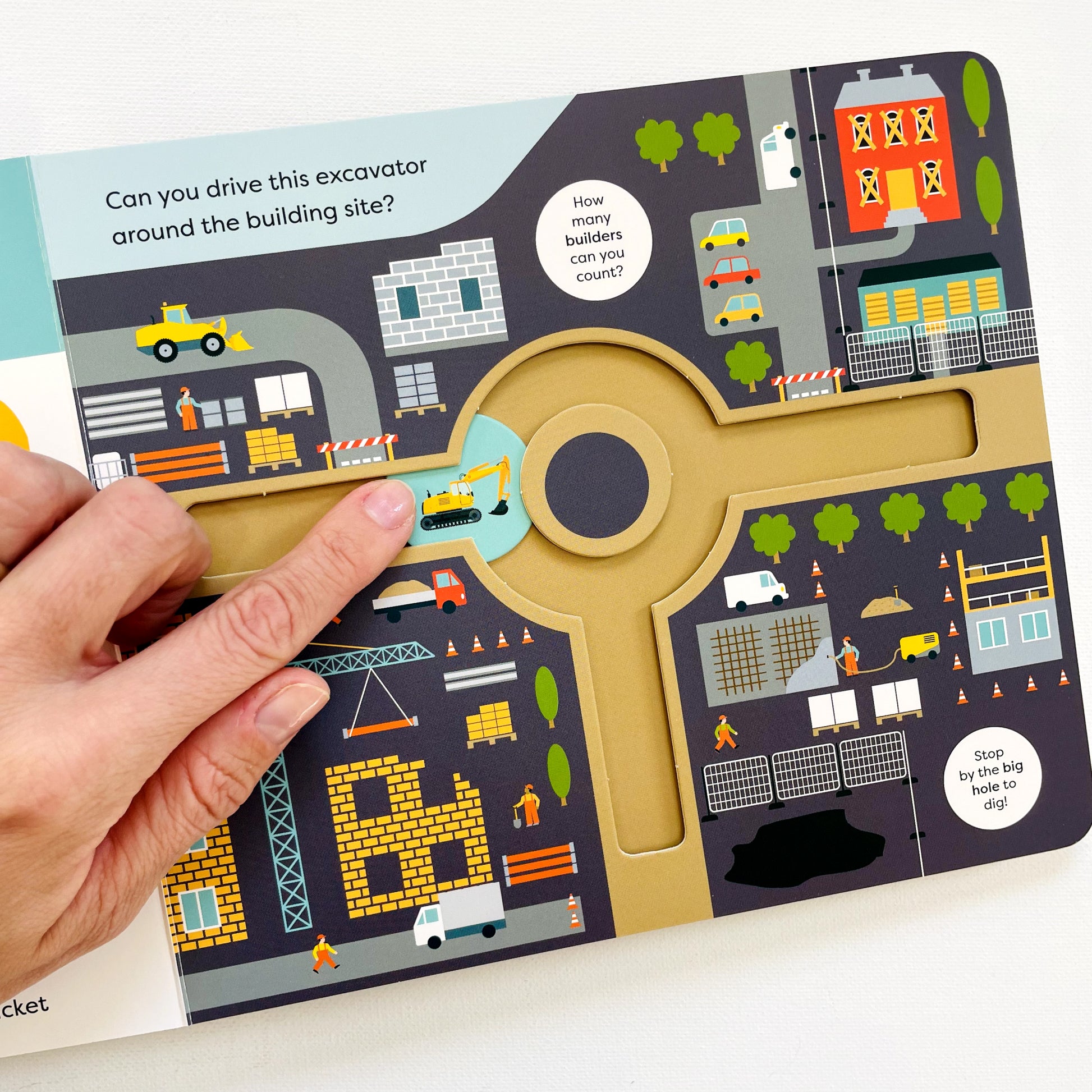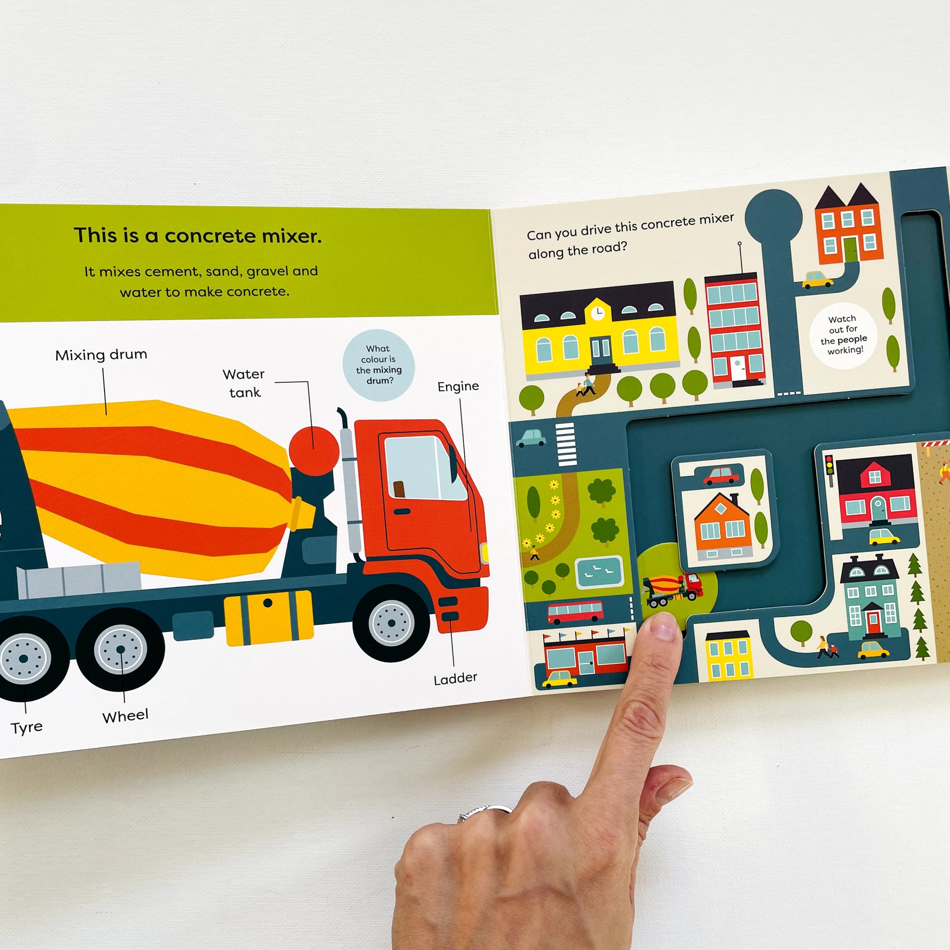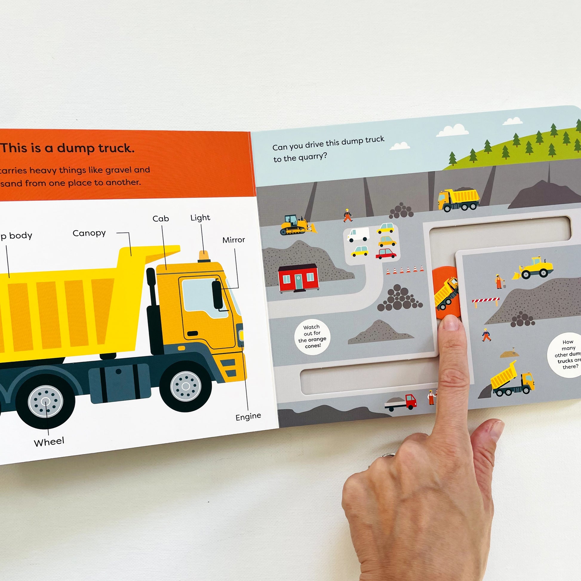Learn vehicle vocabulary with simple first words, clear diagrams and helpful text prompts to encourage discussion. Then trace the transport around different tracks with a moving counter on every spread and the cover. The perfect book for children who love diggers and dump trucks – and being in the driving seat!