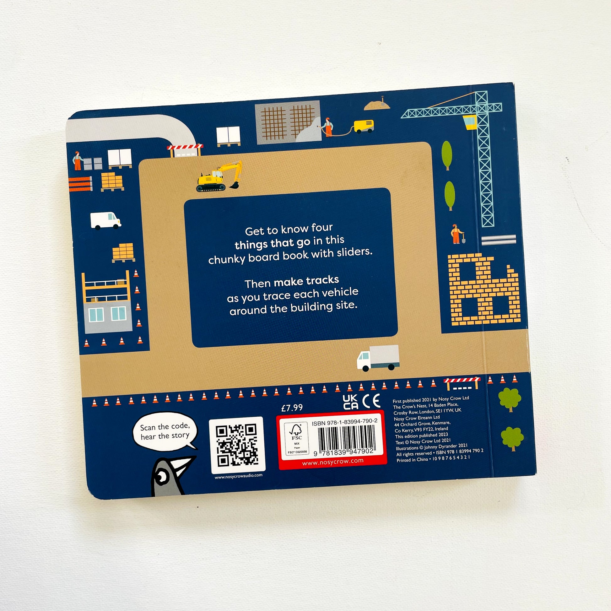 Get to know things that go in these action-packed board books featuring sliding counters! Discover different building site vehicles in this series of interactive board books with easy-to-use moving parts.