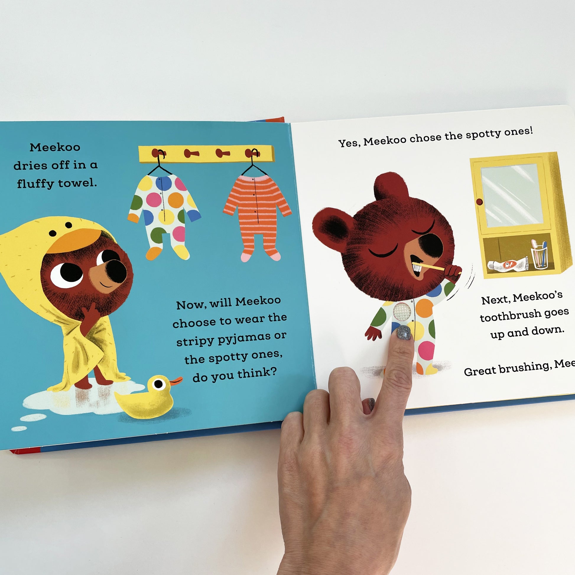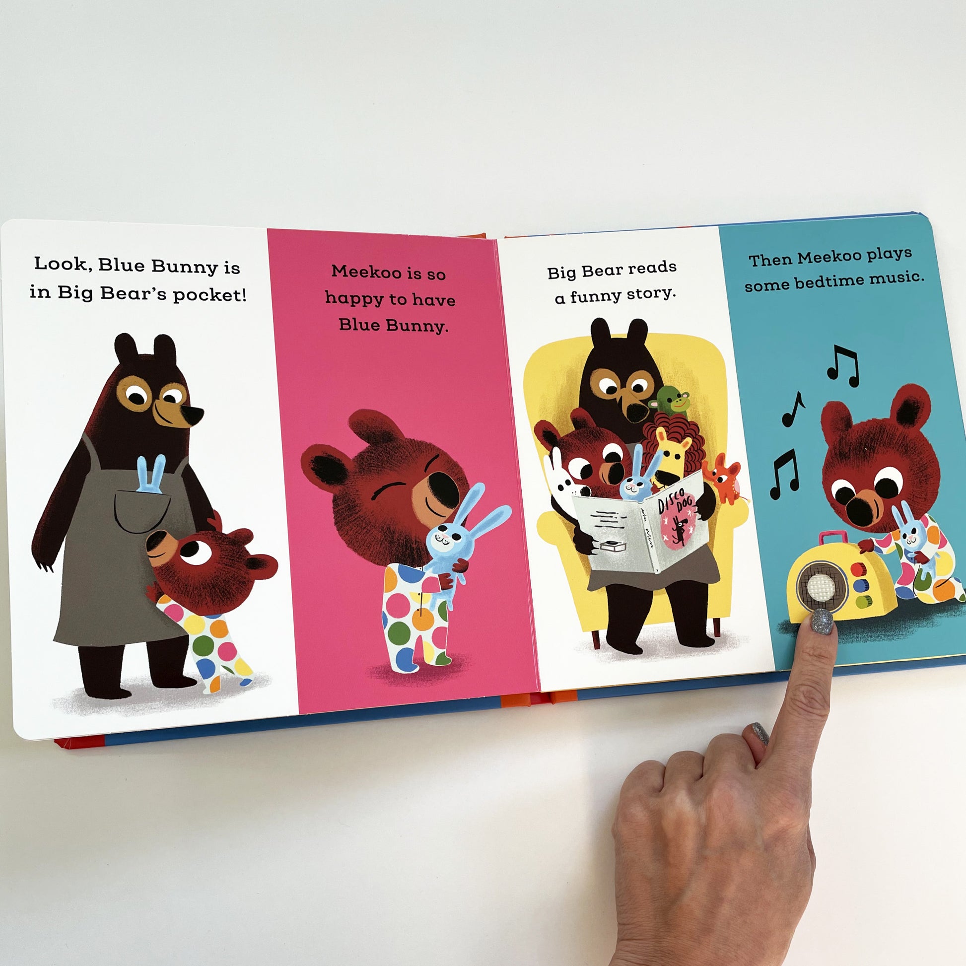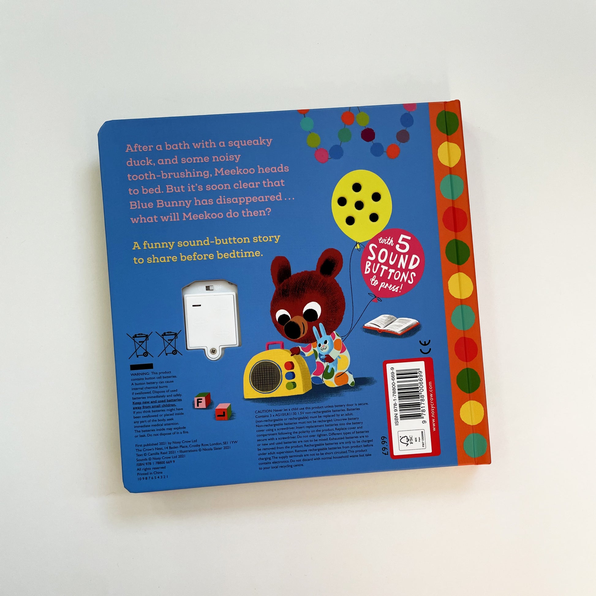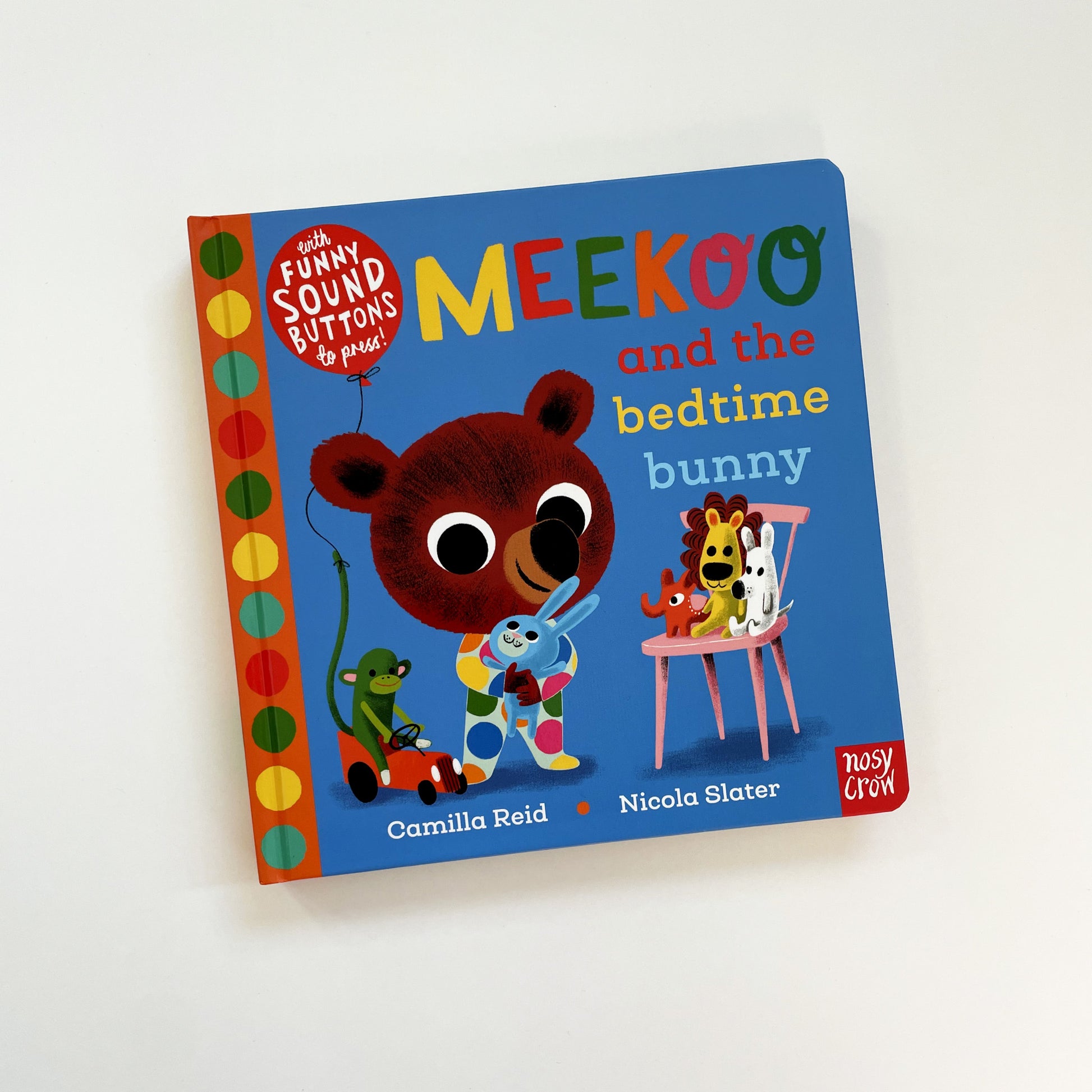 After a bath with a squeaky duck, and some noisy tooth-brushing, Meekoo heads to bed. But it’s soon clear that Blue Bunny has disappeared... what will Meekoo do then? This funny sound-button story is perfect for sharing with little ones before bed.