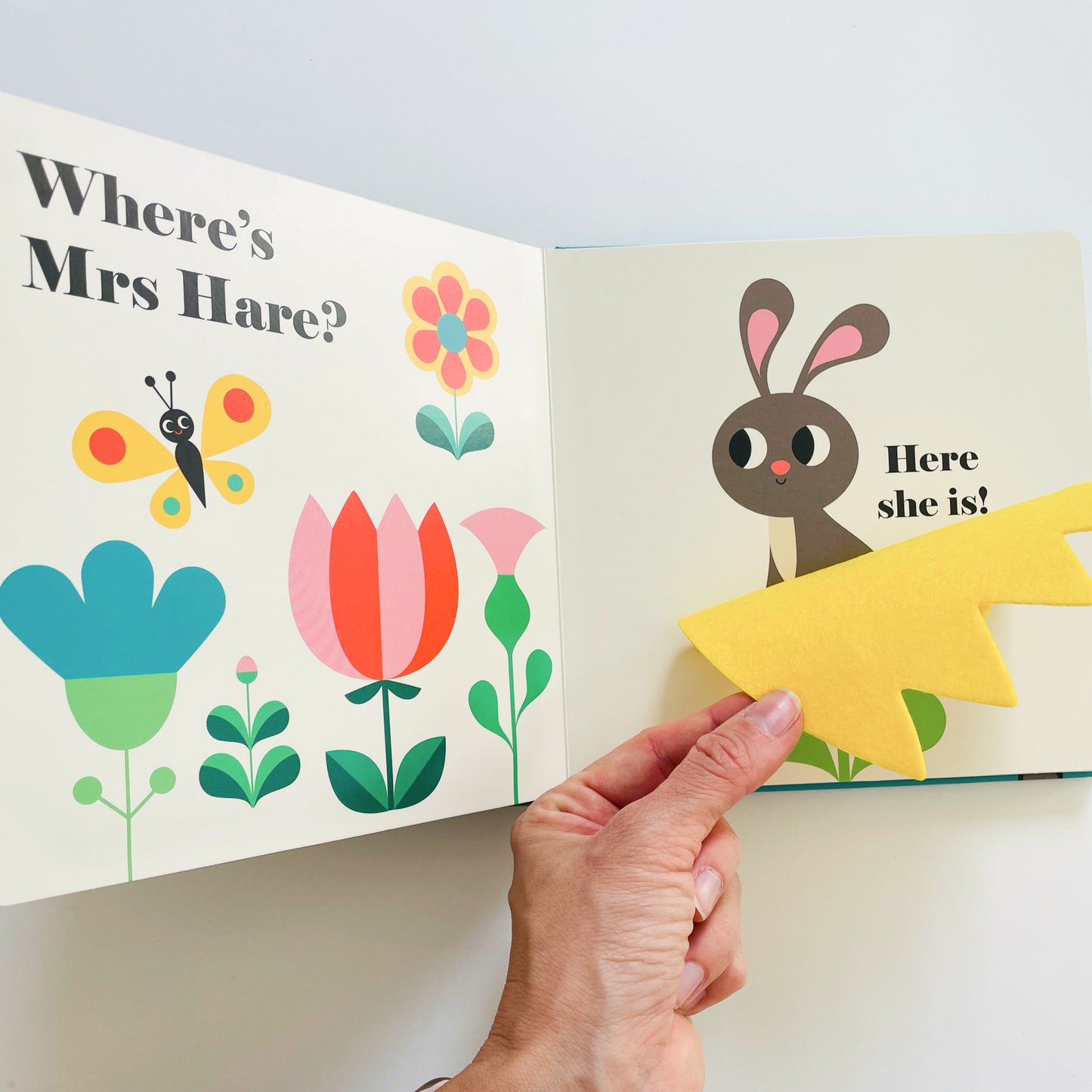 In Where’s Mrs Fox?, you’re on the look out for Mr Mole, Mrs Hare, Mr Woodpecker and Mrs Fox herself!